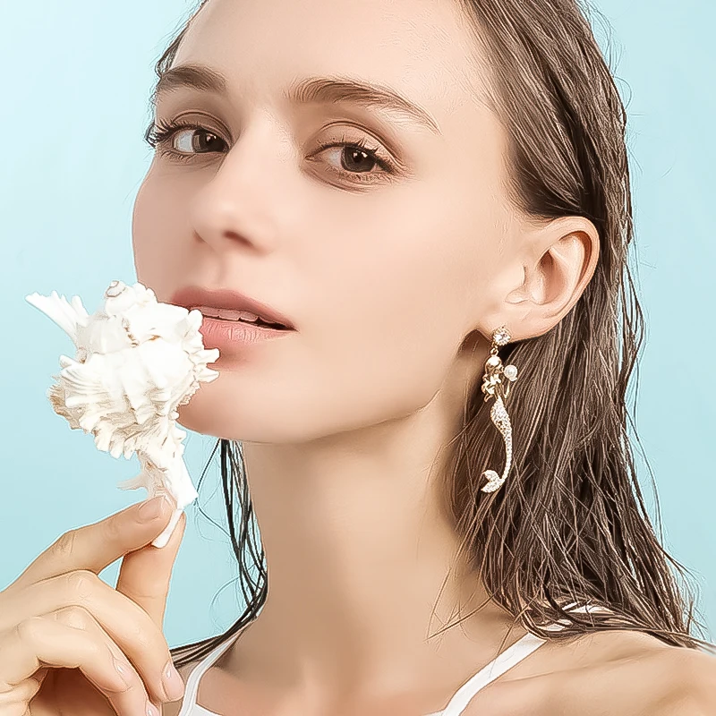 Отзывы о Милые стразы серьги-капельки с кристаллом русалки и жемчугом для женщин