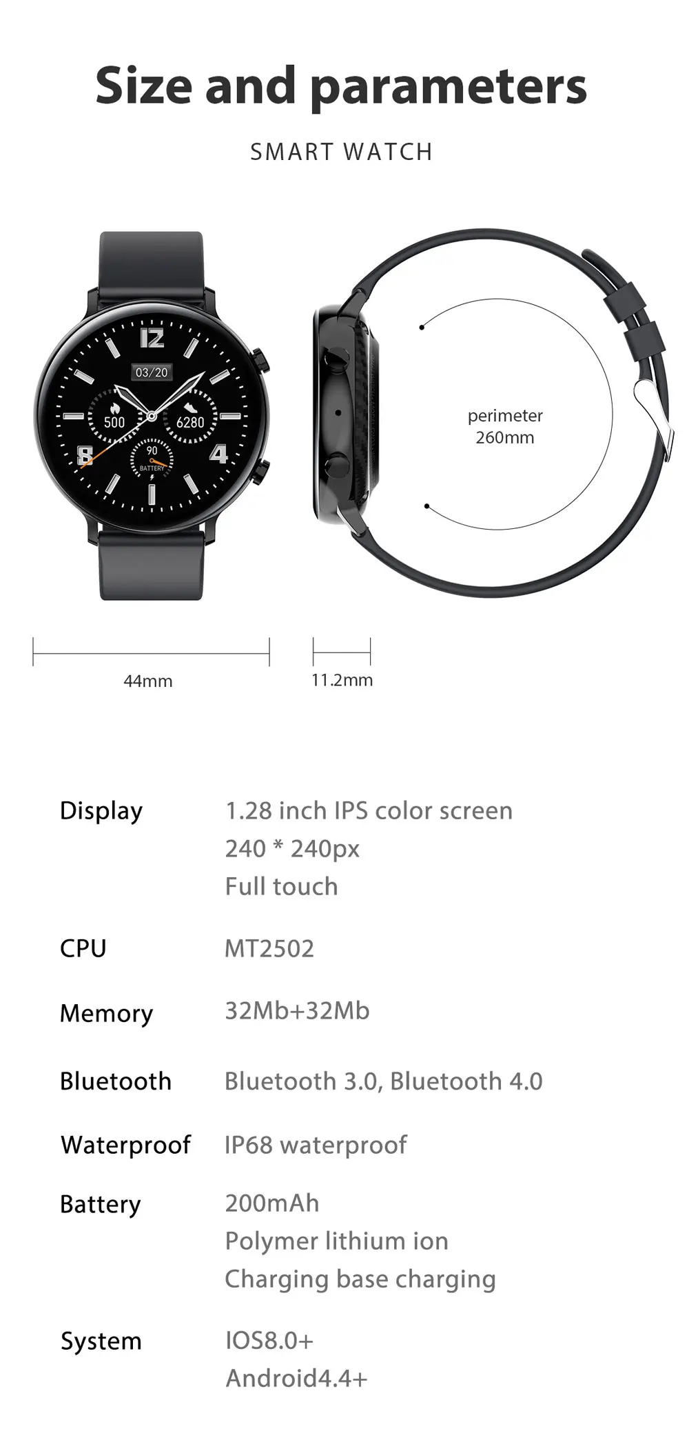 Функции: Переключение нескольких циферблатов, уведомления о сообщениях в мобильном приложении, напоминание о входящих звонках, вызов Bluetooth, мониторинг сердечного ритма, шагомер, анализ сна, несколько режимов упражнений, напоминание о сидячем положении, будильник, секундомер, не беспокоить режим, поднимите запястье, чтобы осветить экран, найти мобильный телефон, управление музыкой, Управление камерой и т. Д.