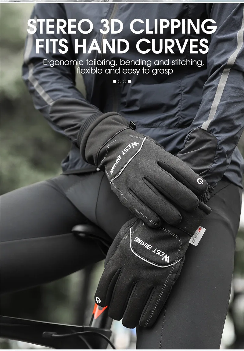 Купить Зимние теплые велосипедные перчатки WEST BIKING водонепроницаемые для сенсорных