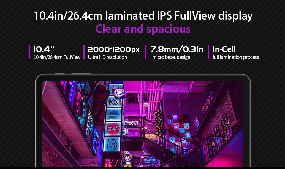 10.4in/26.4cm FullView IPS 2K Ultra HD laminated touchscreen with thin bezels