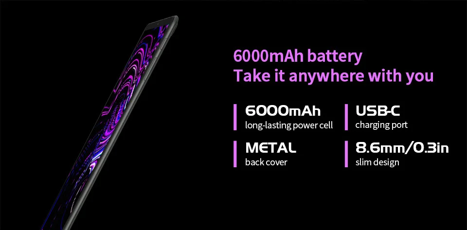 6000mAh battery with USB-C charging lasts up to 10 hours