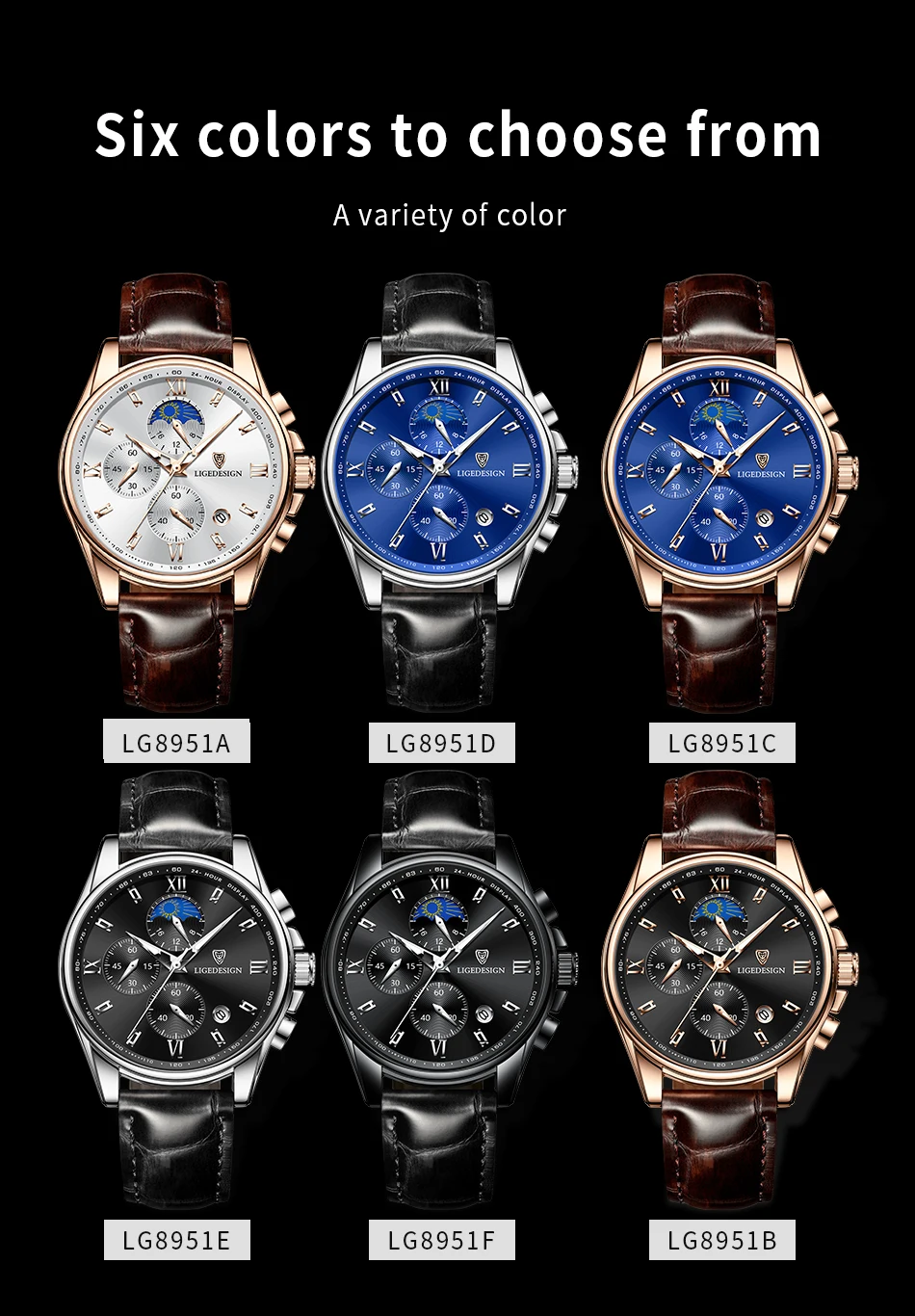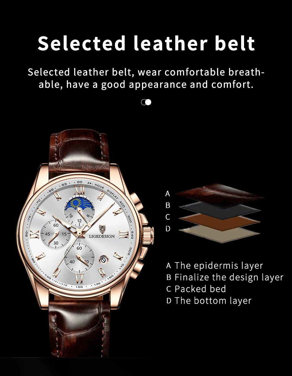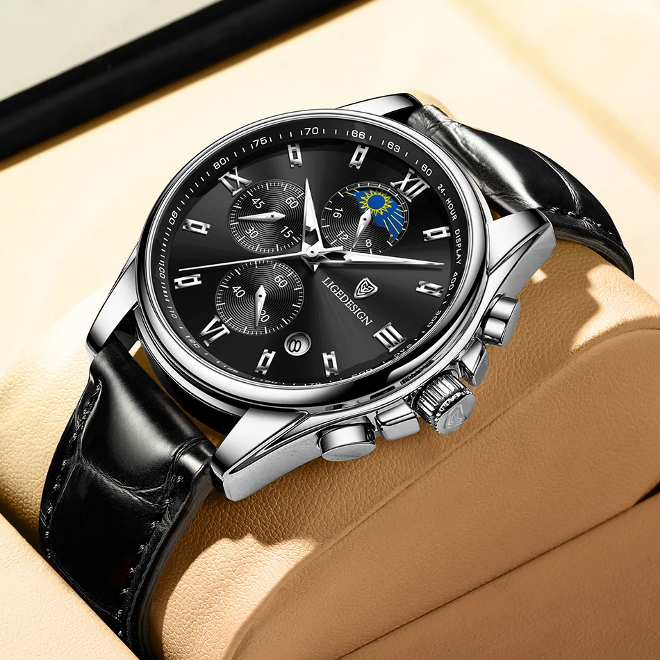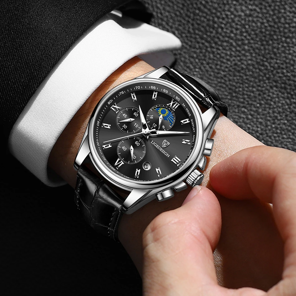 Новые норковые часы LIGE. Золотисто-белый циферблат. Это стильные деловые часы и часы для отдыха. Он имеет функции, такие как хронометраж, автоматический календарь, водонепроницаемый, ударопрочный, световой, 24-часовое испытание фаза Луны; Подходит для всех случаев.Основные характеристики: