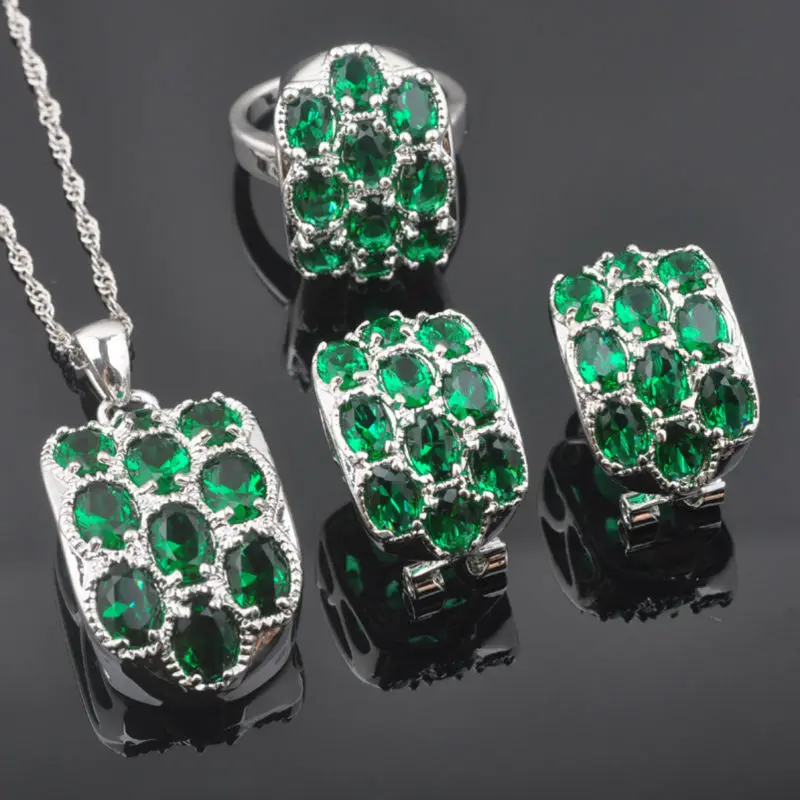 Отзывы о Новый необычный зеленый цирконий женские серебряные Цвет комплекты ювелирных