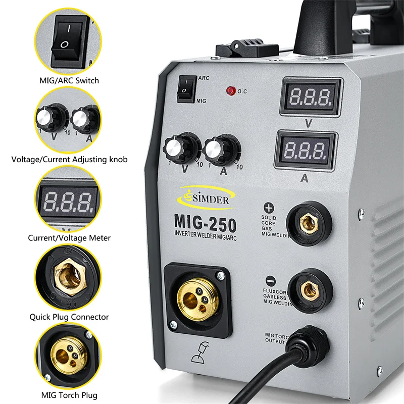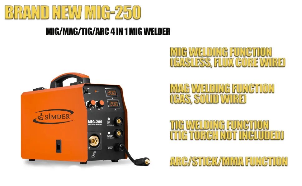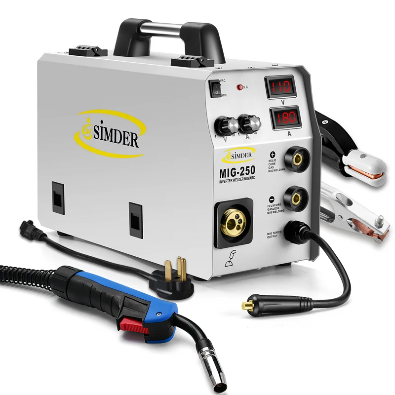 S SIMDER Mig сварщик полуавтоматическая 220V Инвертор аргонодуговая сварка Tig газовой сварки уменьшенного использования пластин Mig Mag сварочный газовый сварочный аппарат 4 в 1 Synergy MIG250 сварочный аппарат
