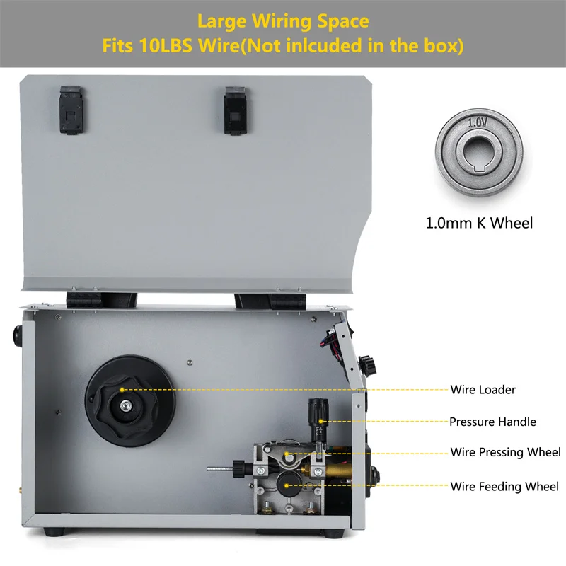 * 【Газ/безгазообразная Сварка 】вы можете использовать провод сердечника потока (без газа) или твердый провод (газ) на этом сварочном аппарате MIG. Этот сварочный аппарат подходит принимает массу весом до 5 кг/10lbs 0,8 мм ~ 1,0 мм поток провод с сердечником/одножильного провода, Макс сварки Толщина 4,5 мм. Пожалуйста, обратите внимание, что эта посылка сварщика MIG не включает провод с сердечником потока или твердый провод.