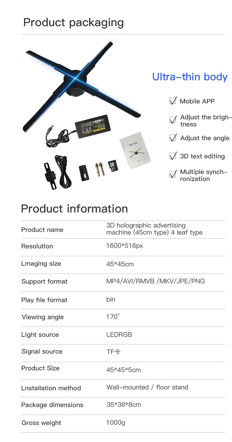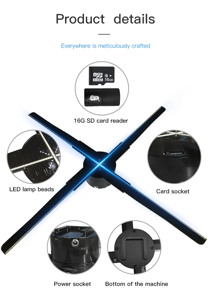 Отзывы о Holographic 3D projection floating naked-eye imaging fan screen LED no display stereo 45CM advertising machine