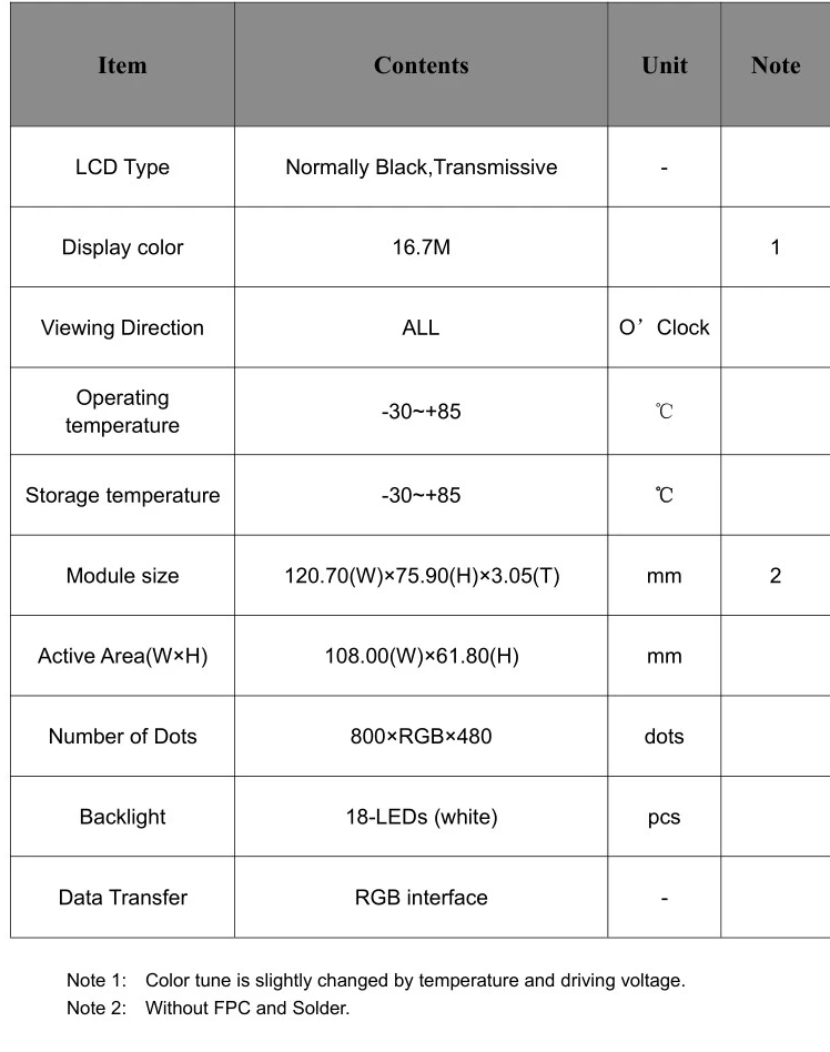 IC, FPC, задний светильник. 5,0 "область отображения содержит 800x480 пикселей и