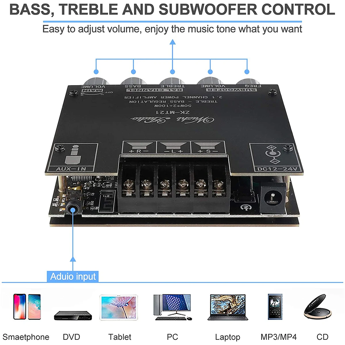 Отзывы о ZK-MT21 TPA3116 2 1 канальный Bluetooth 5 0 панель усилителя сабвуфера 50 Вт x2 + 100 Мощный аудио