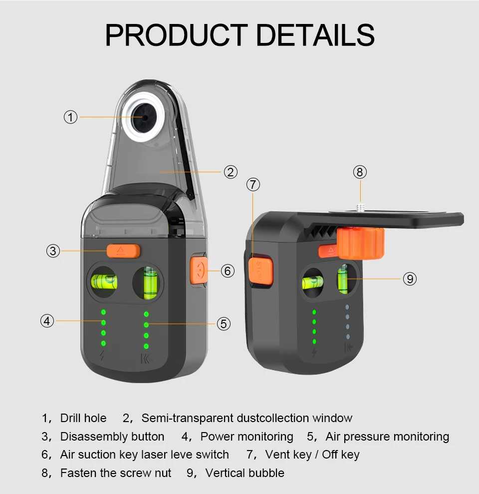 1. Его можно использовать не только как электрический коллектор для буровой пыли, но и как лазерный уровень для широкого спектра применений.