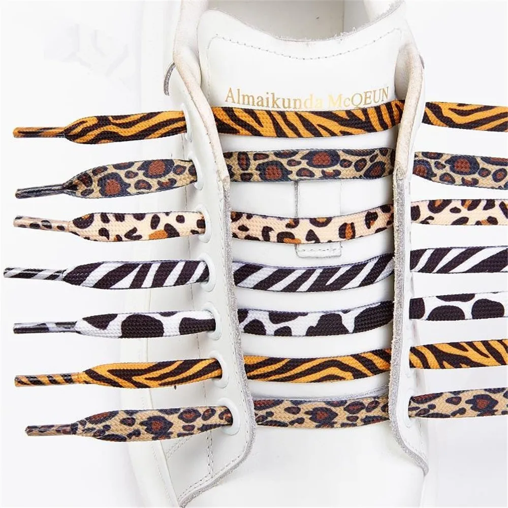Высококачественные классические шнурки с леопардовым принтом зебры черные и - купить