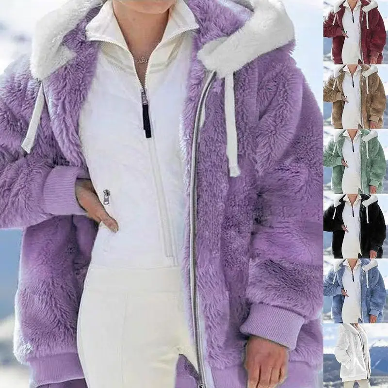Женское пальто из искусственного меха зимний теплый кардиган на молнии верхняя - купить