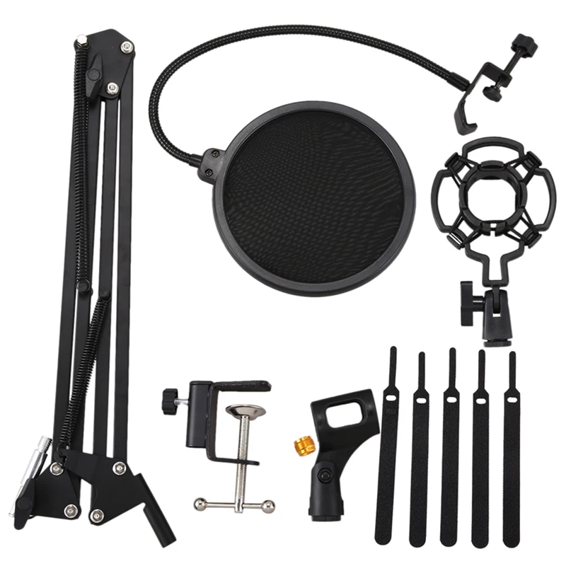 Все-в-одном Комбо: посылка включает в себя все предметы, которые вам нужны для студийной записи и живого звука, подставку для микрофона, монтажный зажим из цинкового сплава, металлический винтовой адаптер от 3/8 до 5/8 дюймов идеально подходит для синих и других микрофонов, фильтра, амортизирующего крепления и пяти кабельных стяжек, Легко собирается и переносится.