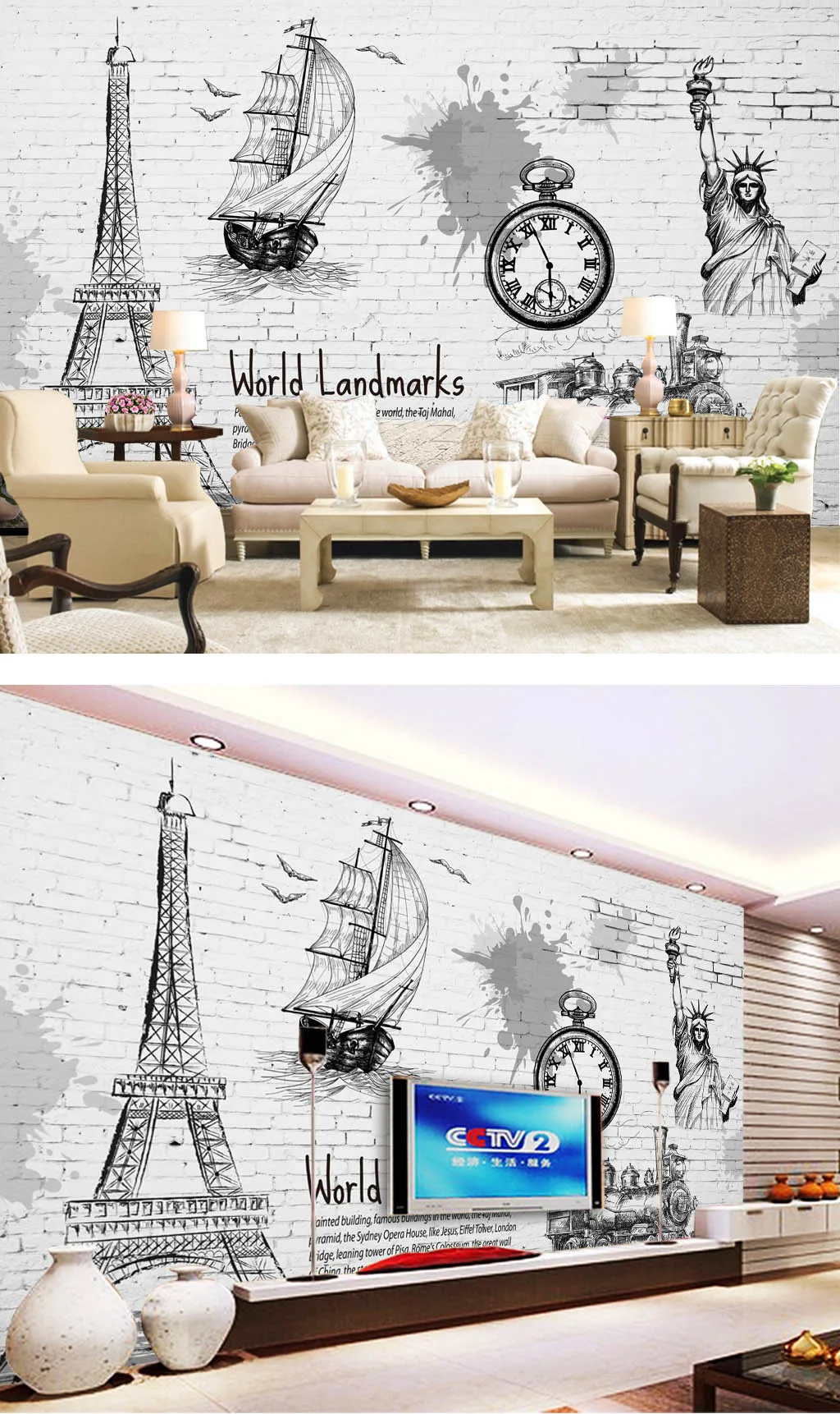 Beibehang индивидуальная большая роспись Парижская башня кирпичная стена фон для - купить