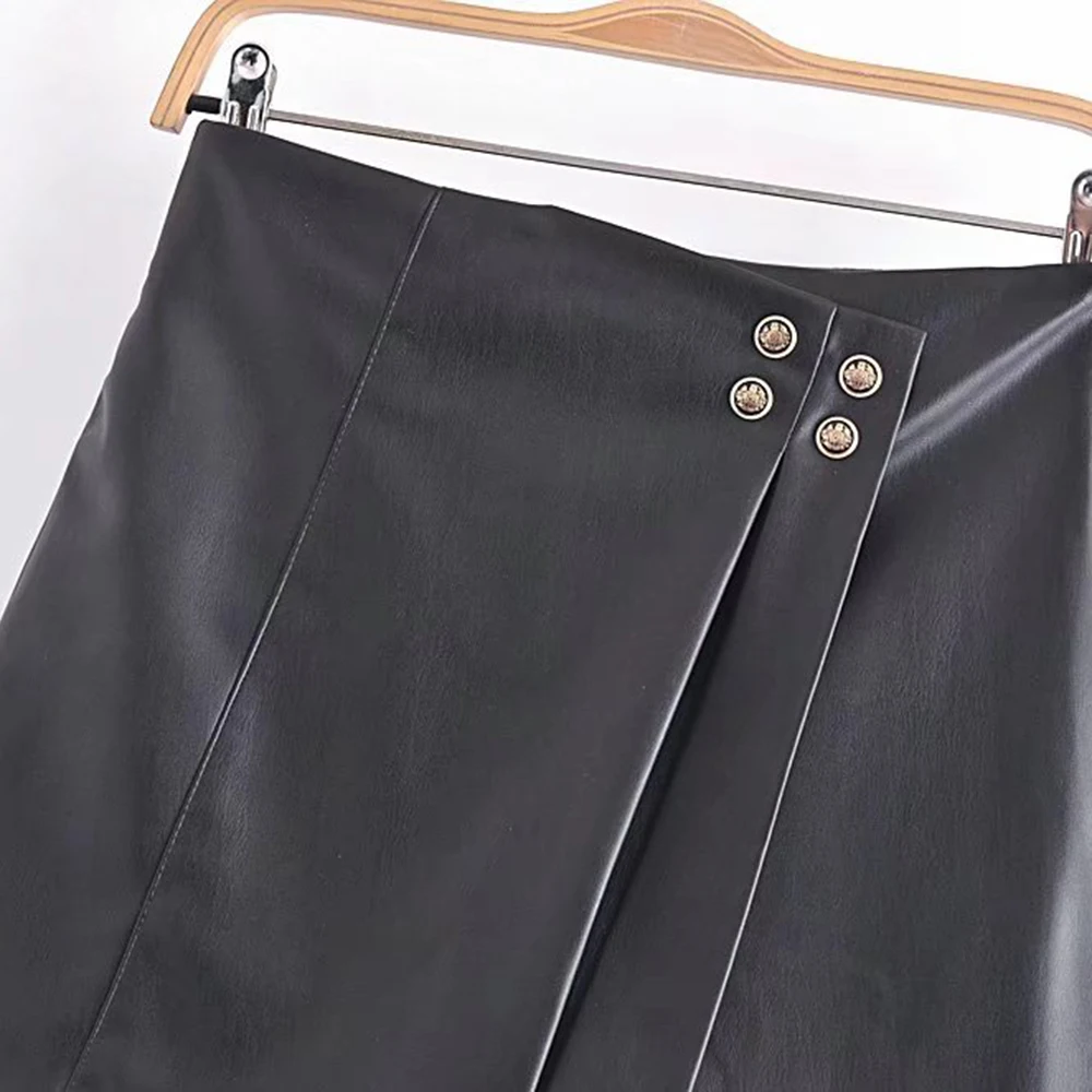 Осень 2021 черная кожаная юбка-шорты XIKOM с высокой талией Женская одежда - купить