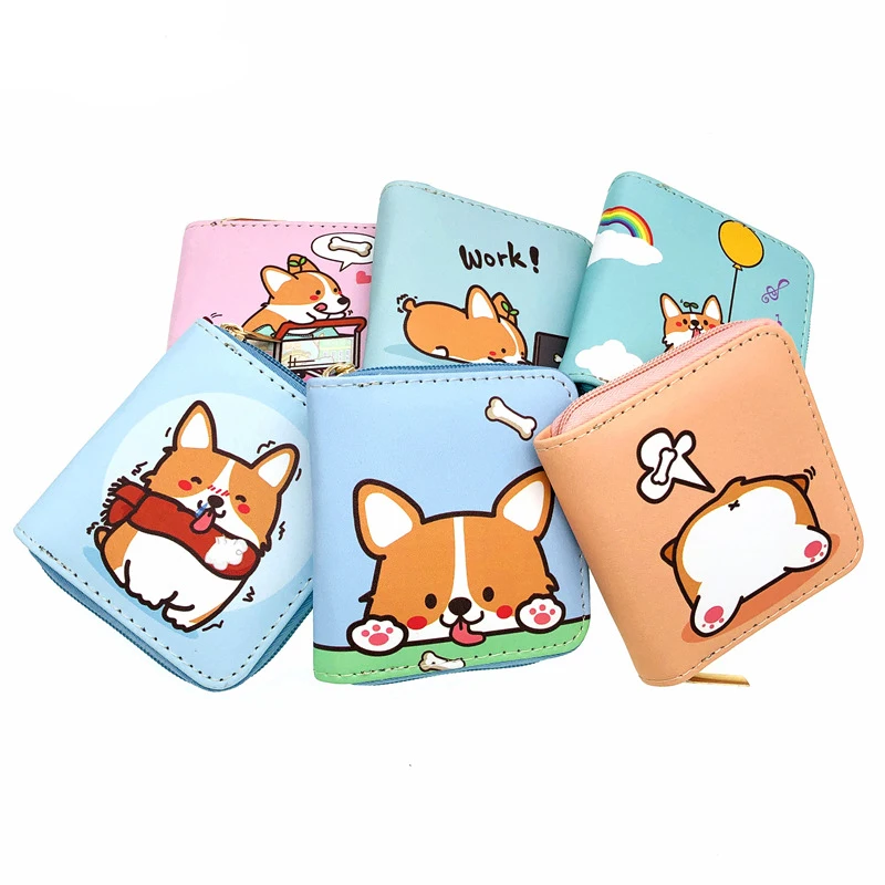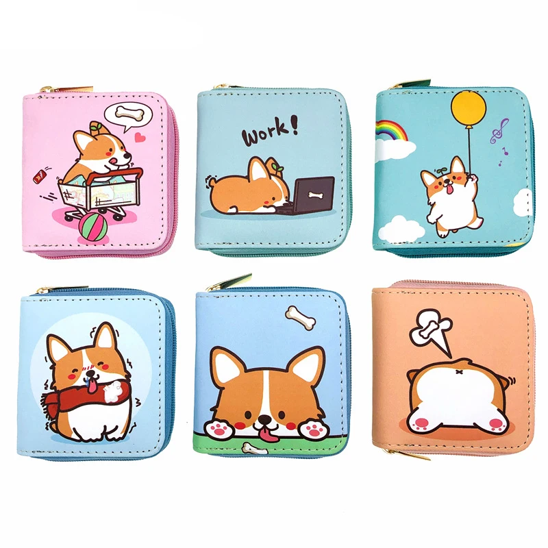 Маленький кошелек с рисунком собаки из мультфильма для женщин, кожаный держатель для кредитных карт, сумка для студентов на молнии, кошелек для монет, Карманный Кошелек, мини-клатч