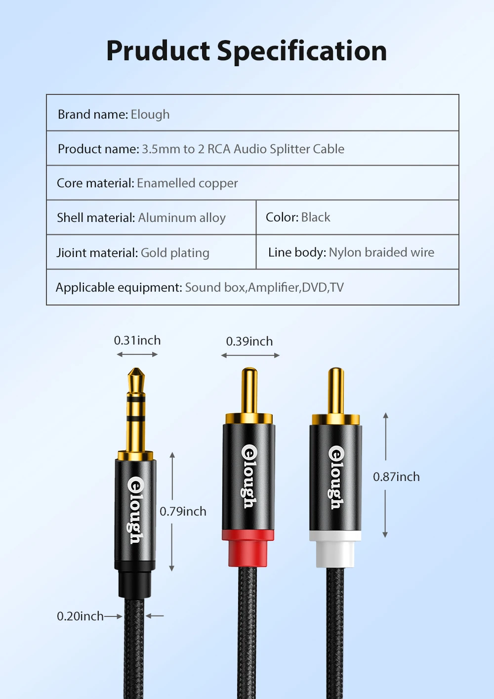 Отзывы о Кабель Elough RCA с разъемом 3 5 мм на 2 Aux аудиокабель штекер адаптер HiFi сплиттер для Apple