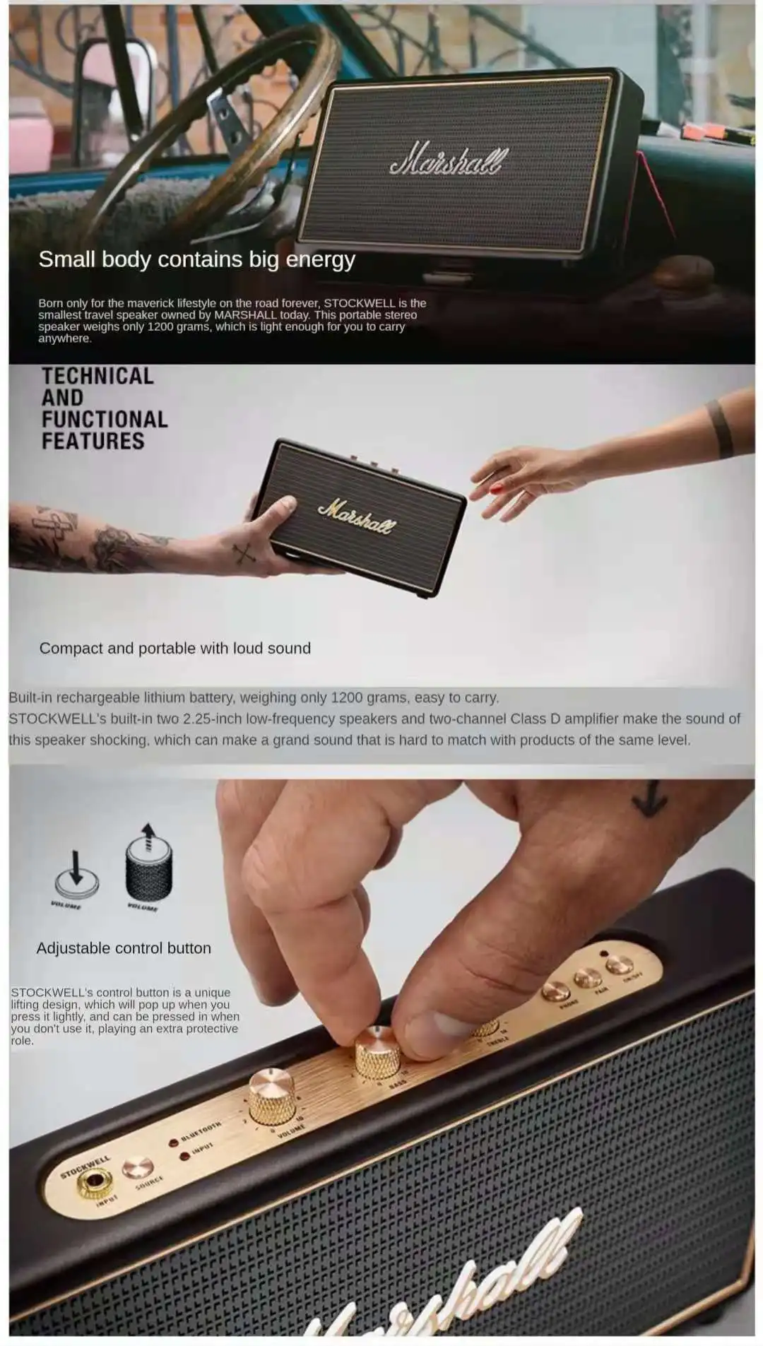 Портативный беспроводной Bluetooth динамик MARSHALL Stockwell I наружная водонепроницаемая - купить