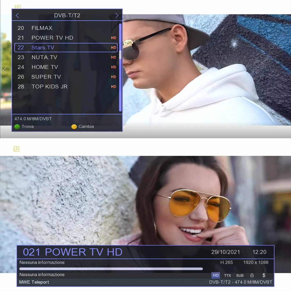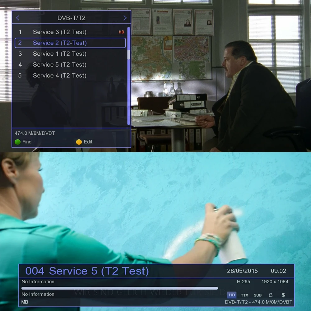 Terrisal receiver standard DVB-T2 (EN 302 755 v1.3.1, support T2-lite), DVB-T (EN 300 744), DVB-C