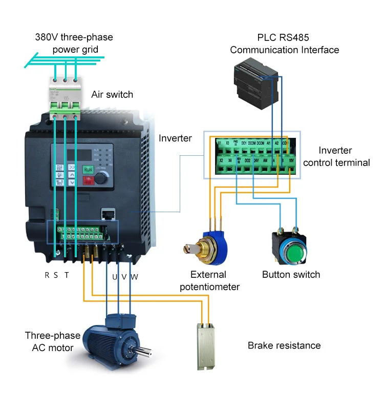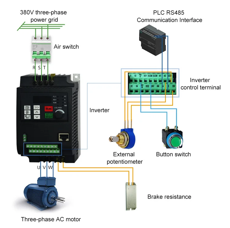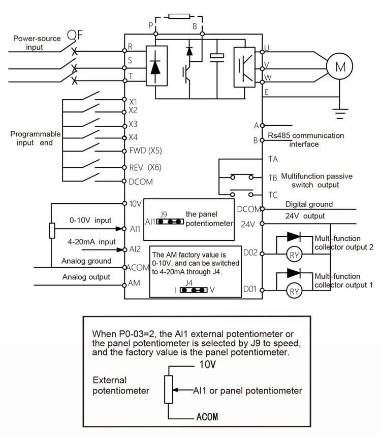 Дополнительное Примечание:Дополнительное Примечание: R, S, T являются входными клеммами трехфазного источника питания преобразователя частоты.