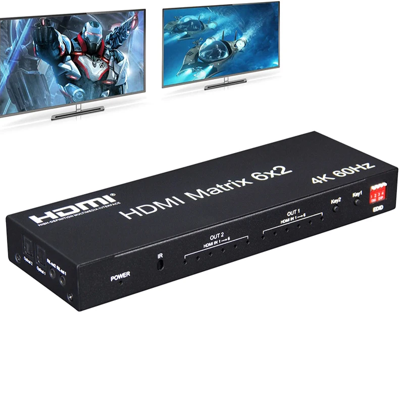 Отзывы о 6x2 HDMI матрица 4K 2 0 матричный видеопереключатель 4x2 с аудио 3D Ultra HD @ 60 Гц 4 в выход для