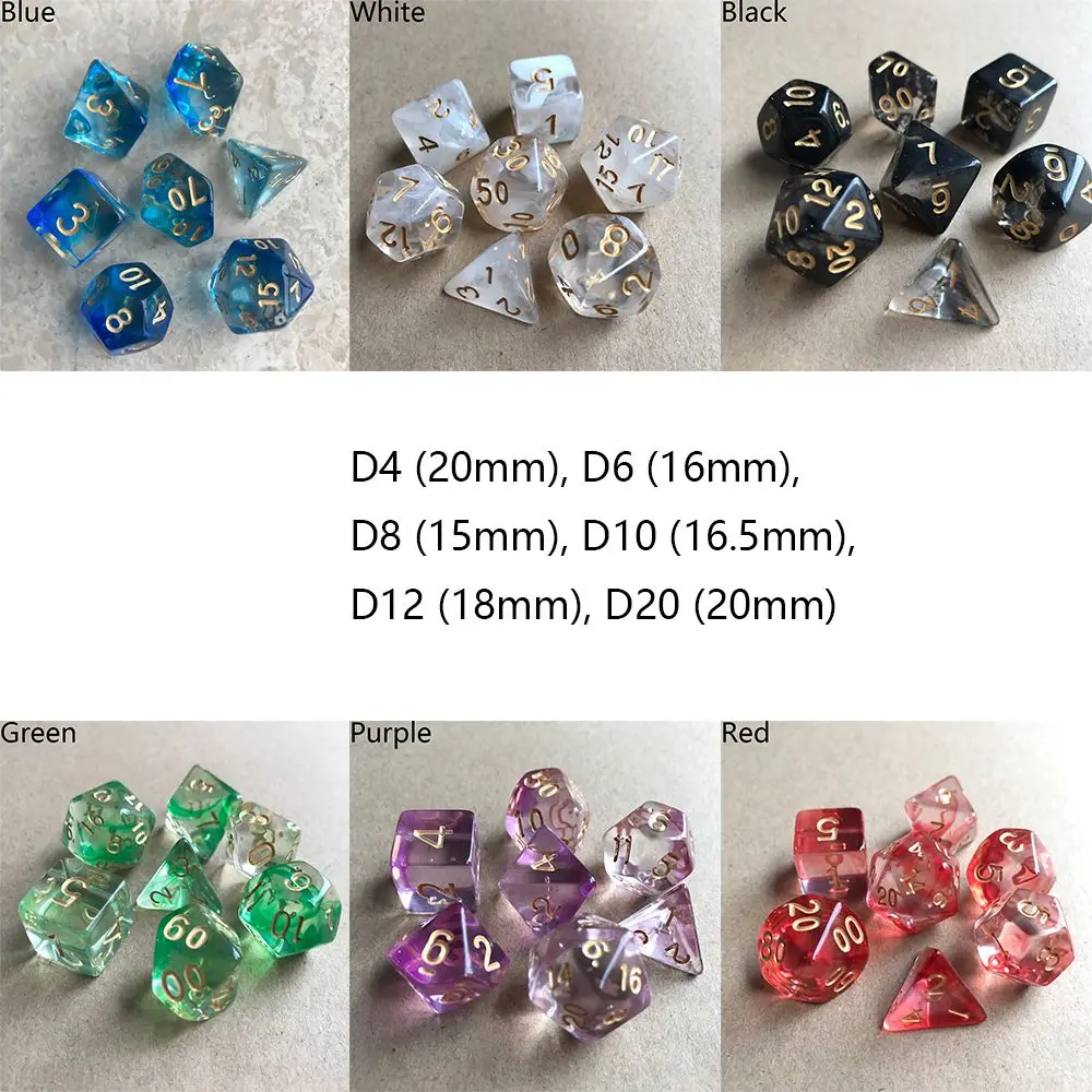Отзывы о 7 шт./компл. набор многосторонних прозрачных игральных костей игральные кости для