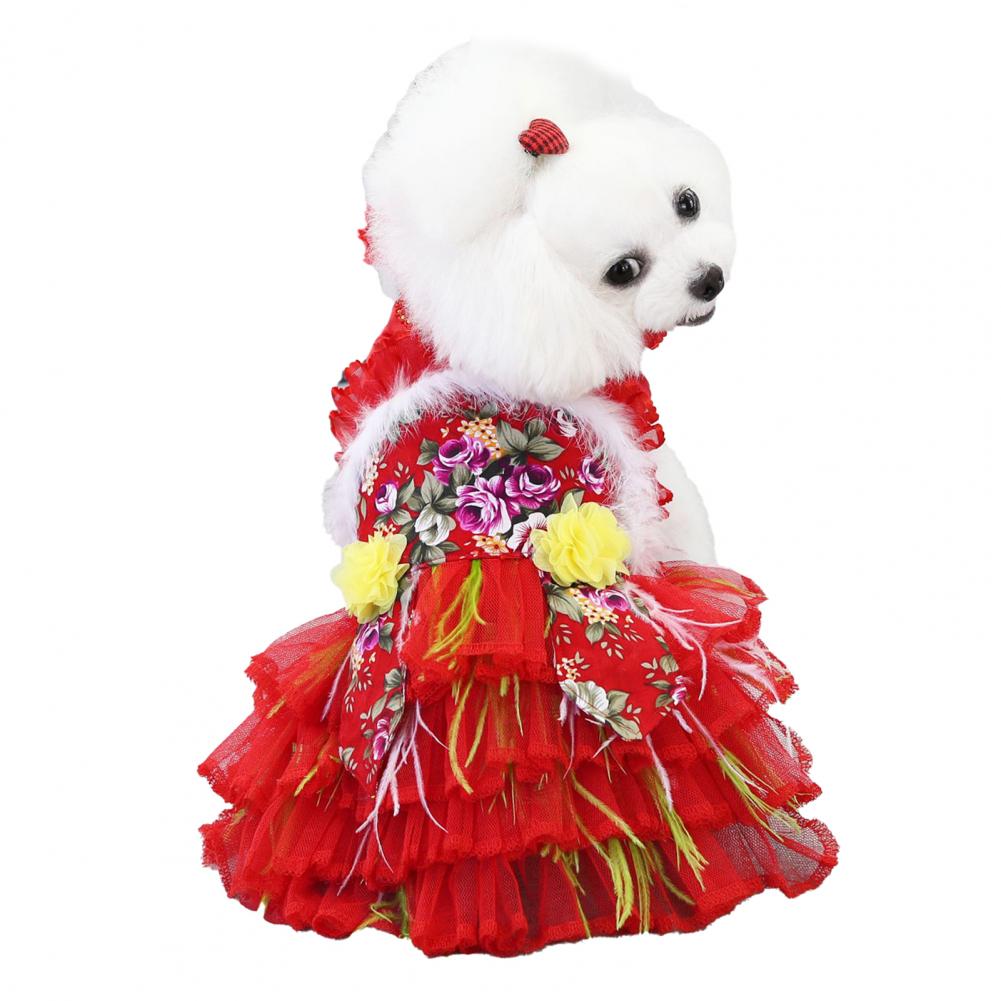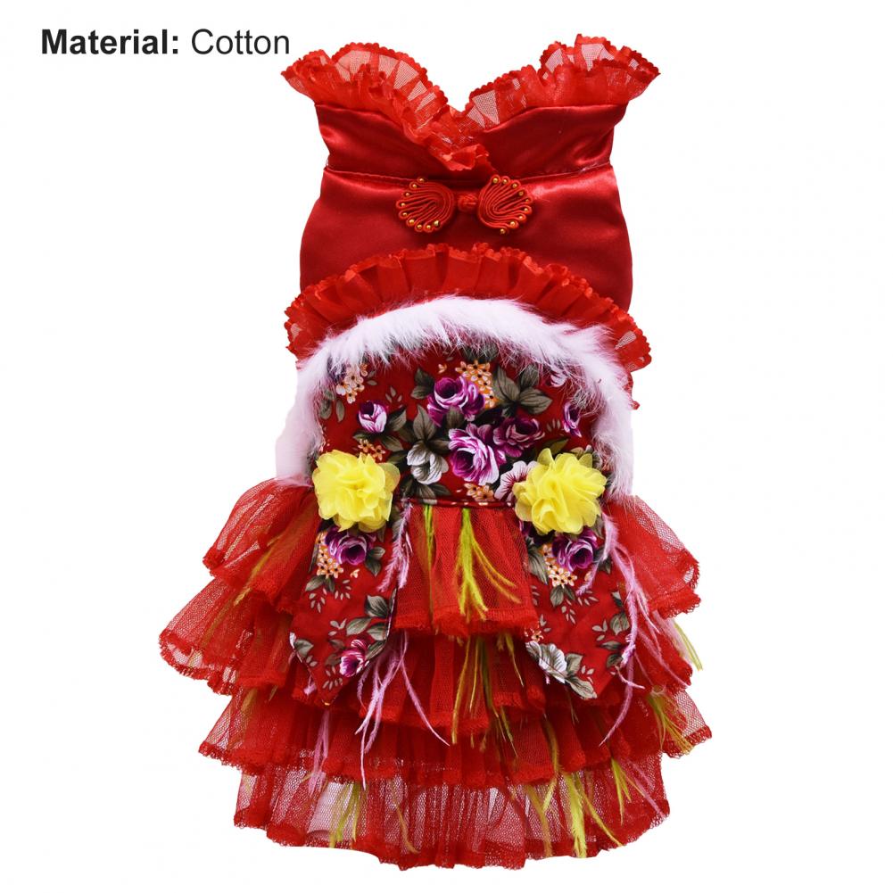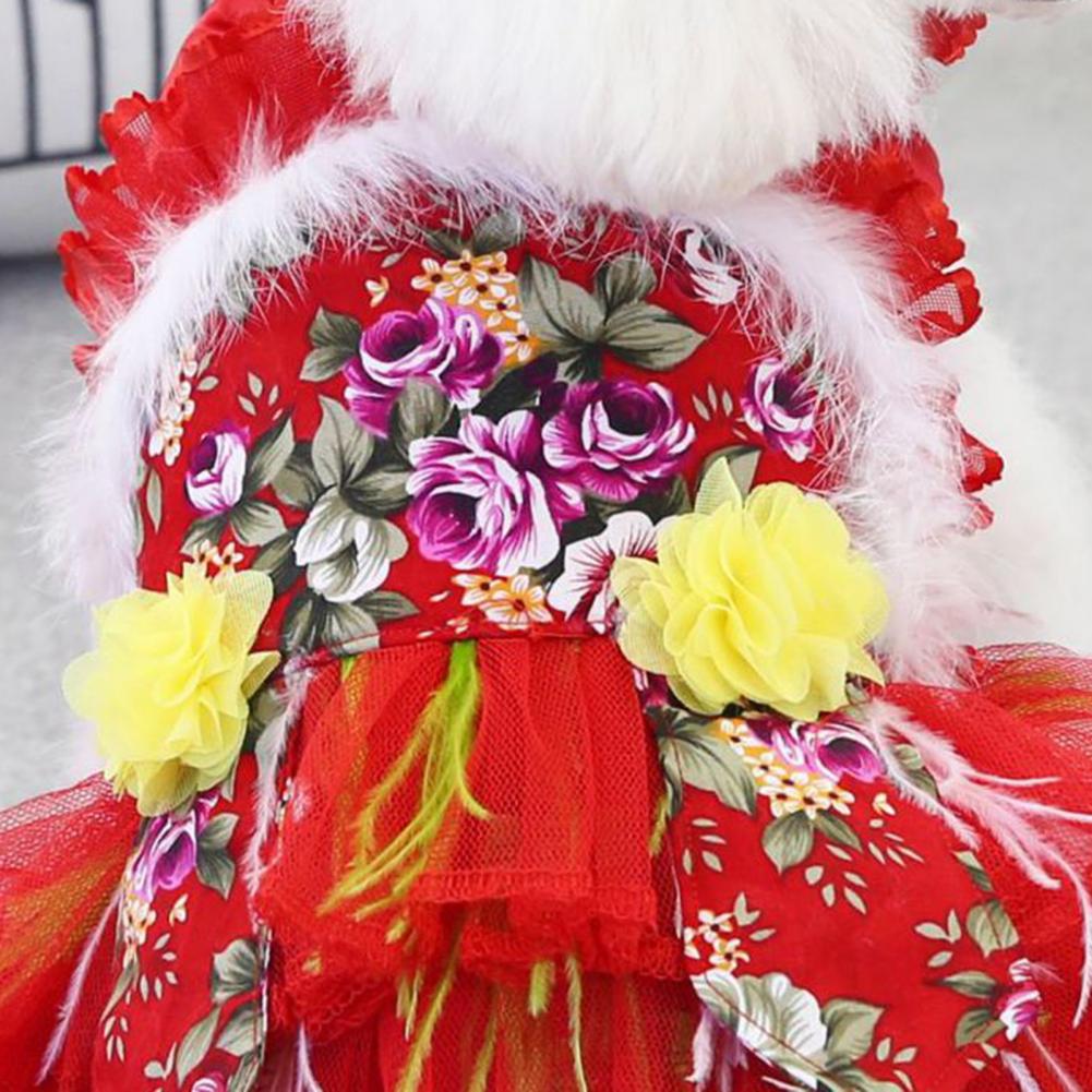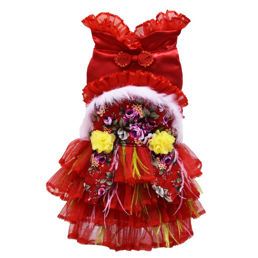 Это сделает вашего питомца милым, модным и выделится из толпы при ношении платья для домашних животных ярко-красным, в китайском стиле, с цветочным узором и многослойным фатиновым дизайном.