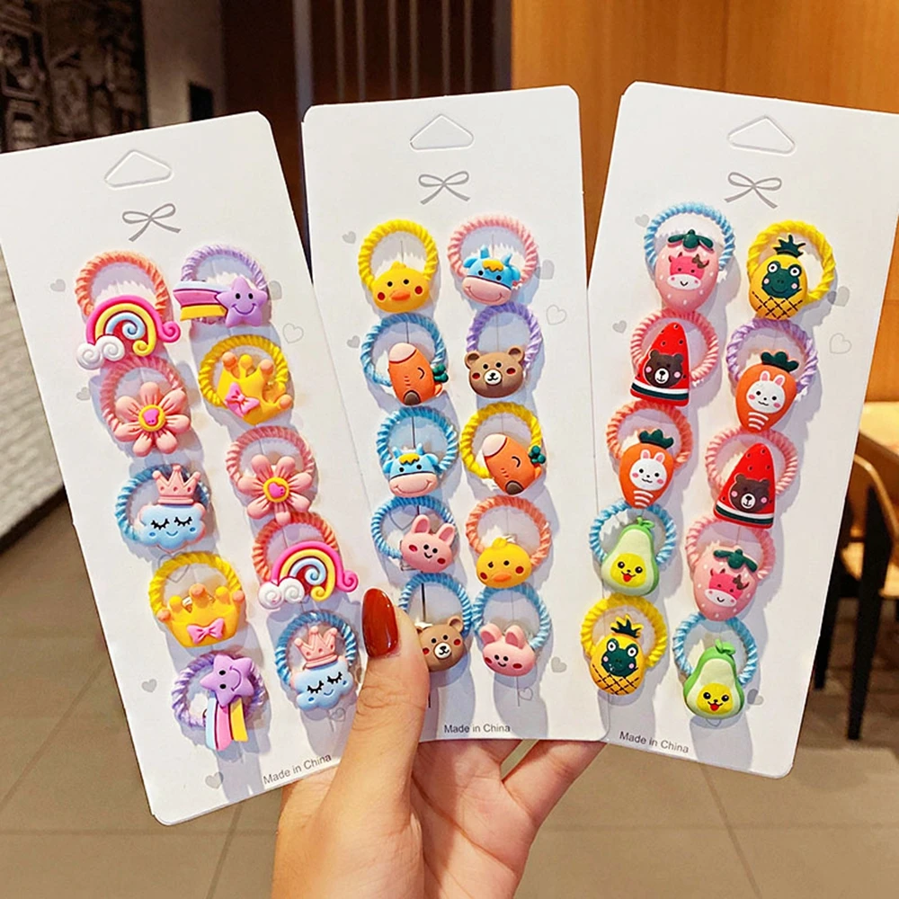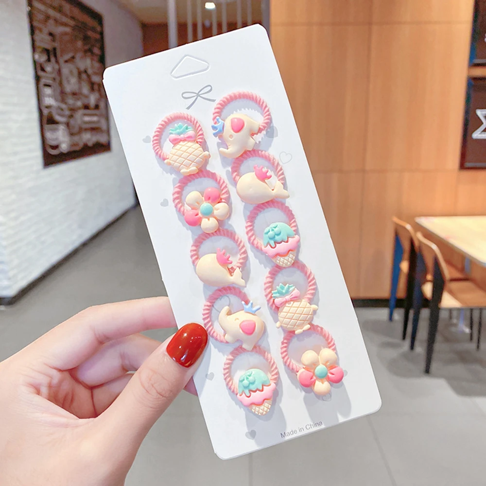 10PCS/Set New Girls Cute Cartoon Flower Small Scrunchie Kids Ponytail Hair Tie Elastic Bands Fashion Accessories Set - купить по - купить