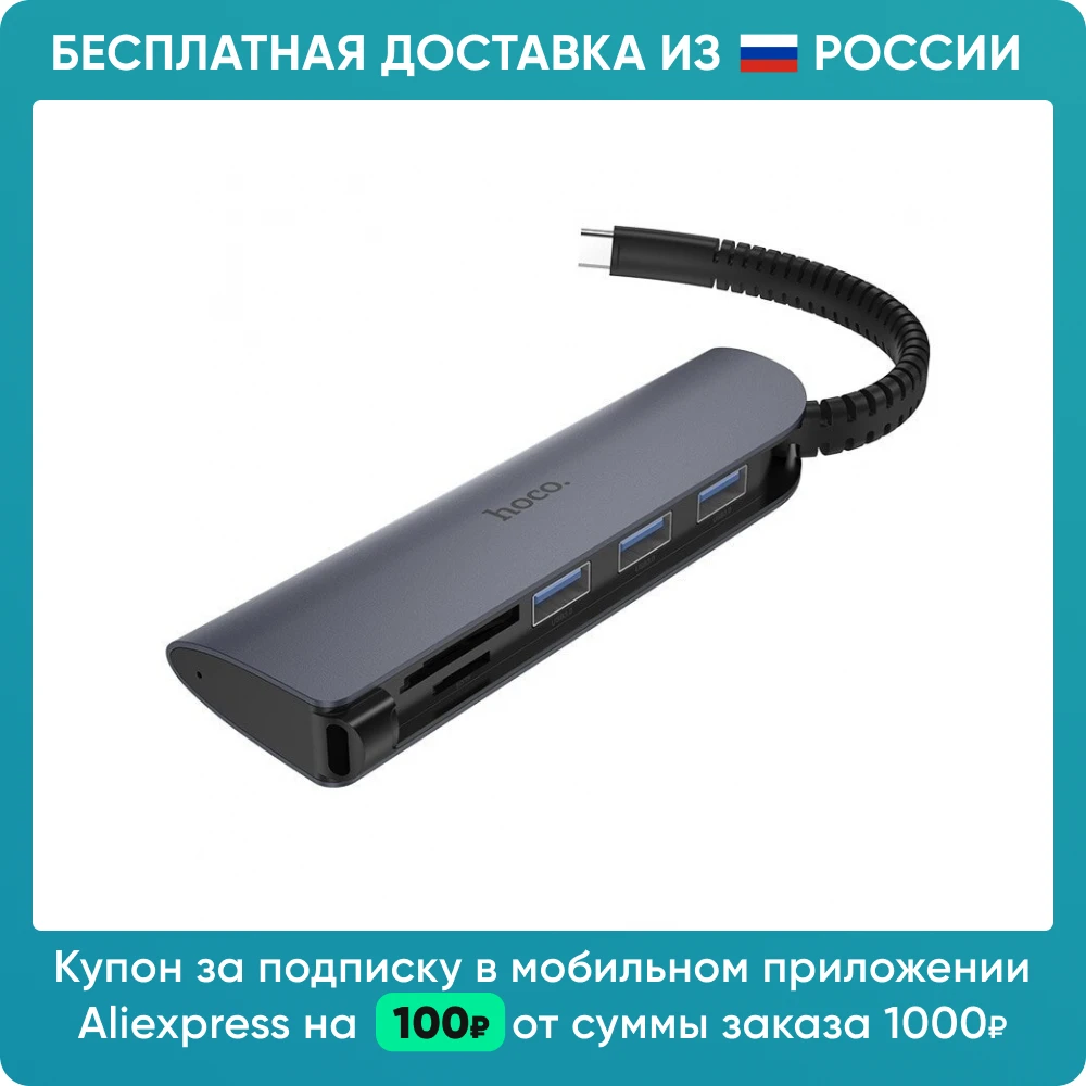 Отзывы о Адаптер Hoco HB17 Easy Connect (Type-C к USB3.0*3+SD+TF) серебристый матовый