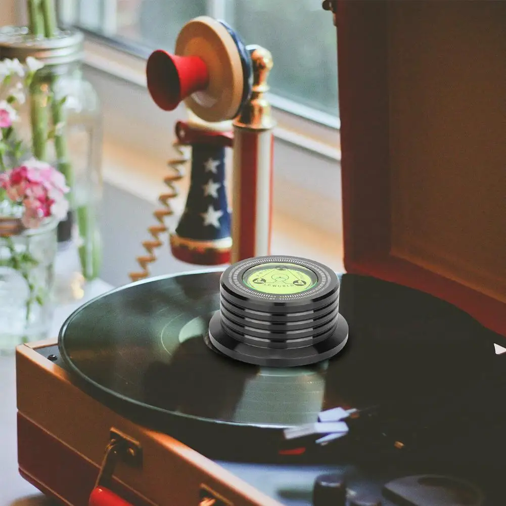 Это отличный стабилизатор записи для проигрывателей 60 Гц LP. Это может предотвратить запись от тряски и уменьшить вибрацию со стабильной скоростью.