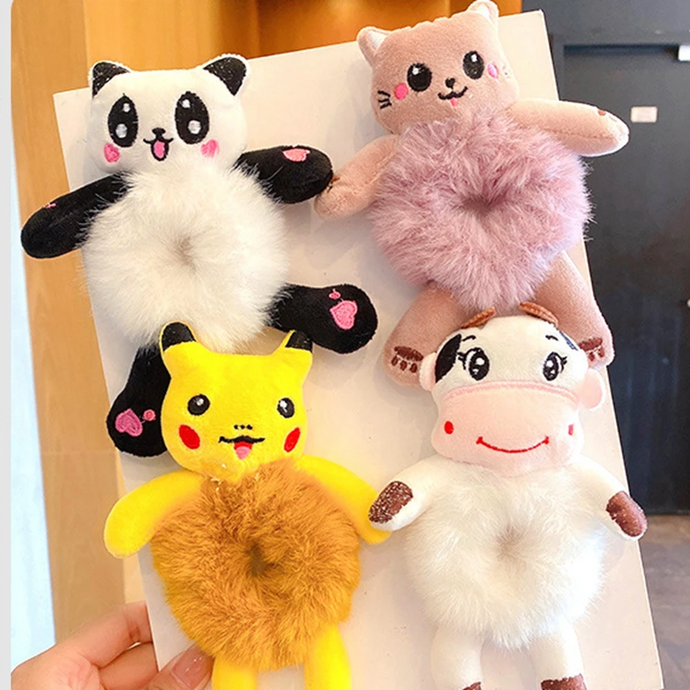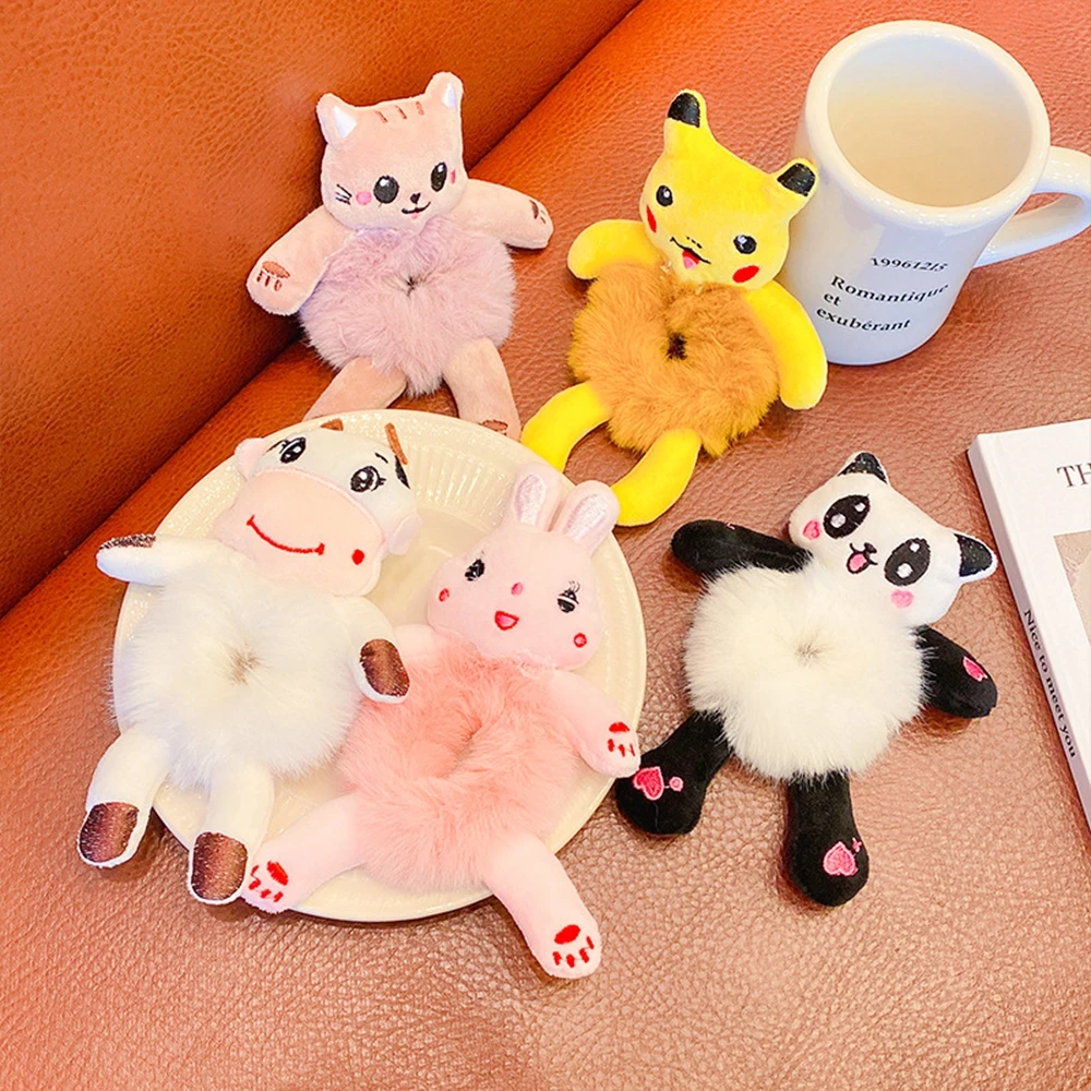 Купить New Women Girls Cute Cartoon Panda Cat Rabbit Plush Elastic Hair Bands Sweet Decorate Scrunchie Fashion Accessories |