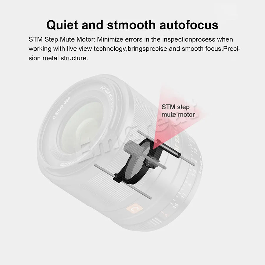 -STM шаговый двигатель: SMT шаговый двигатель обеспечивает быструю, тихую и точную производительность автофокуса вместе с полным ручным управлением фокусом. Кроме того, внутренняя конструкция фокусировки поддерживает общую длину объектива во время использования для улучшения обработки и более быстрого отклика.