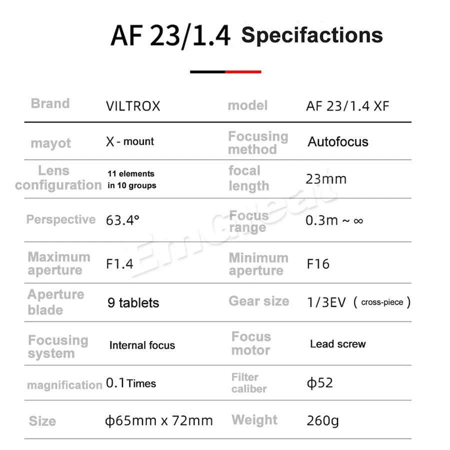 -Компактный дизайн: Viltrox 23 мм F1.4 предназначен для беззеркальных камер Fuji X-mount и обеспечивает эквивалентное фокусное расстояние 35 мм. Легкий и компактный дизайн объектива и универсальность могут удовлетворить различные потребности фотографов и пользователей видео, легко носить с собой и работать.