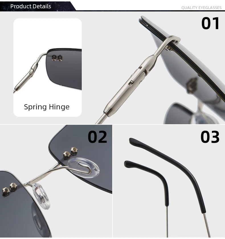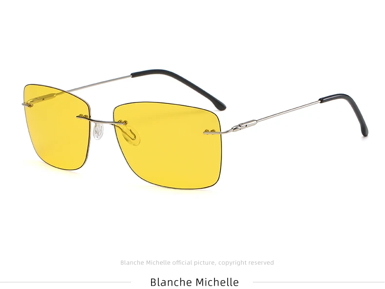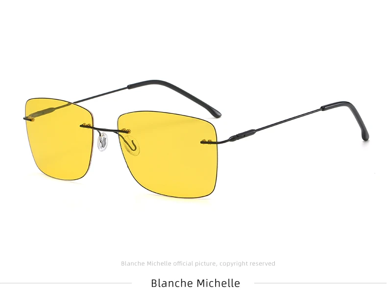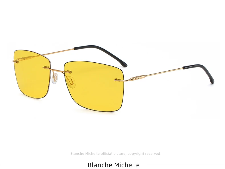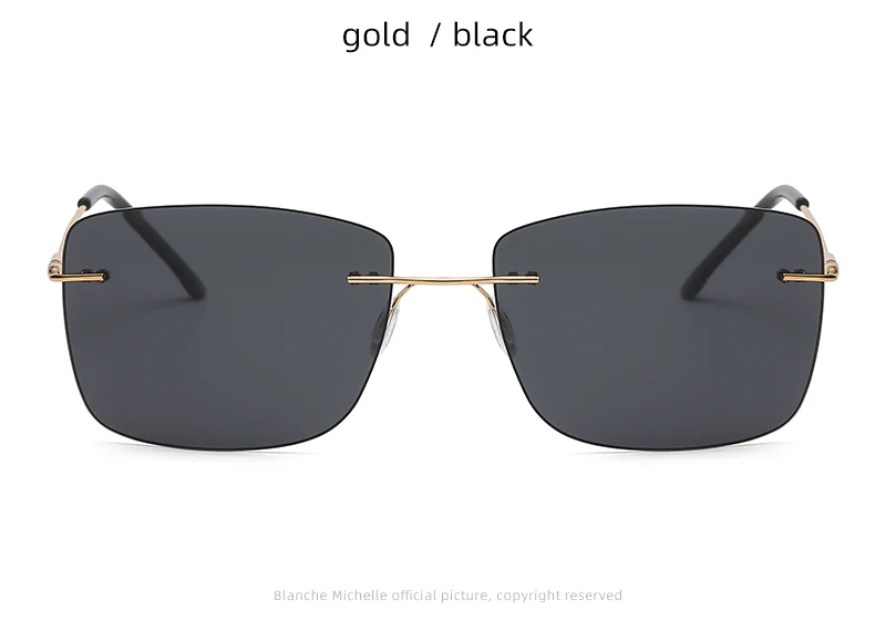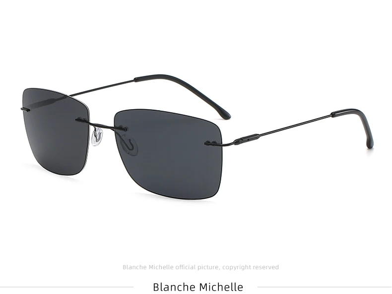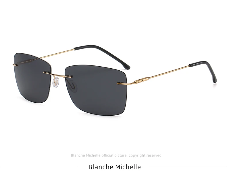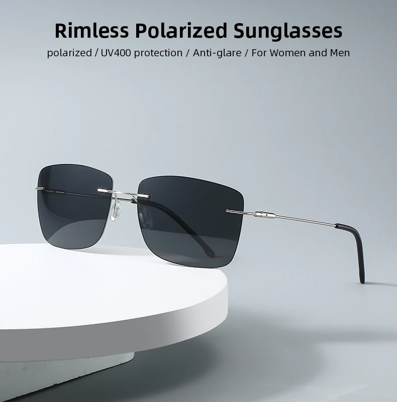 Это высококачественные поляризованные солнцезащитные очки без оправы, подходящие для мужчин и женщин. Квадратный и Ретро стиль, поляризованные линзы, антибликовые, анти-ультрафиолетовые, можно использовать для вождения, рыбалки, повседневной носки. Очки очень легкие и не давят. С помощью пружинных петель, он может адаптироваться к различным фигурам лица.