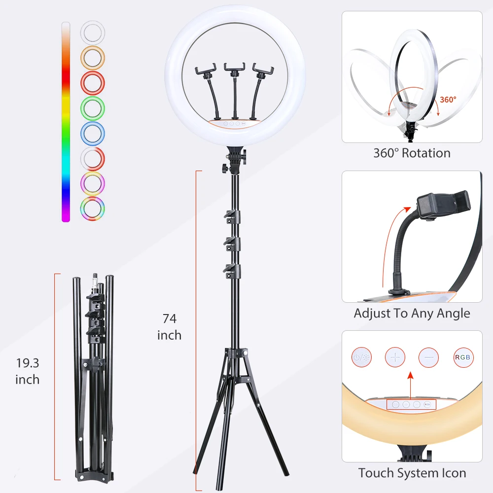 Отзывы о Светодиодный кольцевой светильник 18-дюймовая RGB лампа со штативом 2 м для