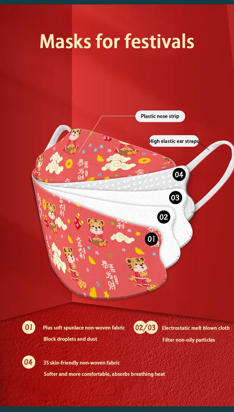 Отзывы о Рождественская маска KN95 для взрослых 4-слойная защитная fpp2 дышащая Мультяшные