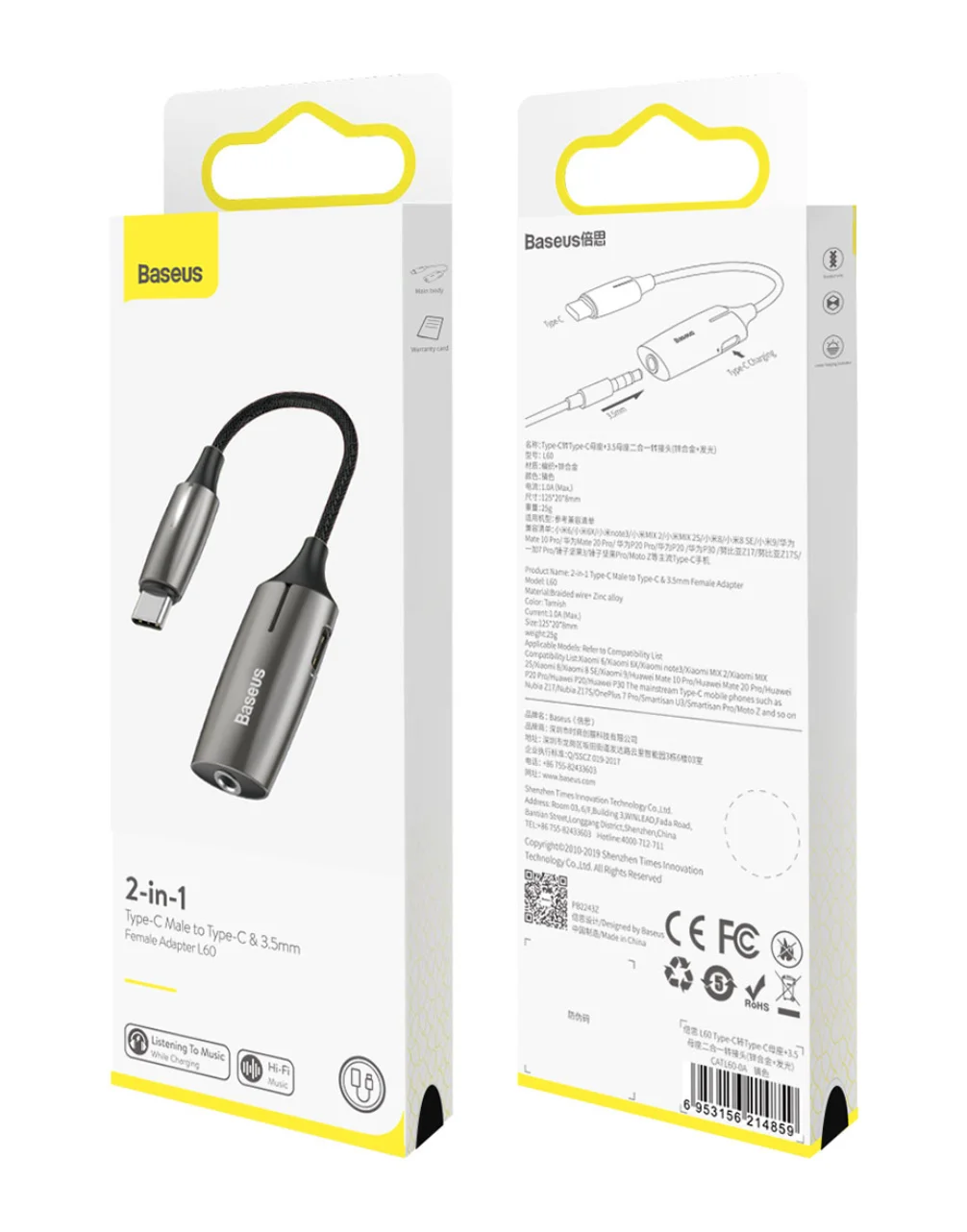 Отзывы о Адаптер на USB Type C + miniJack 3.5мм Baseus L60 кабель переходник 2в1 наушники и зарядка для MacBook