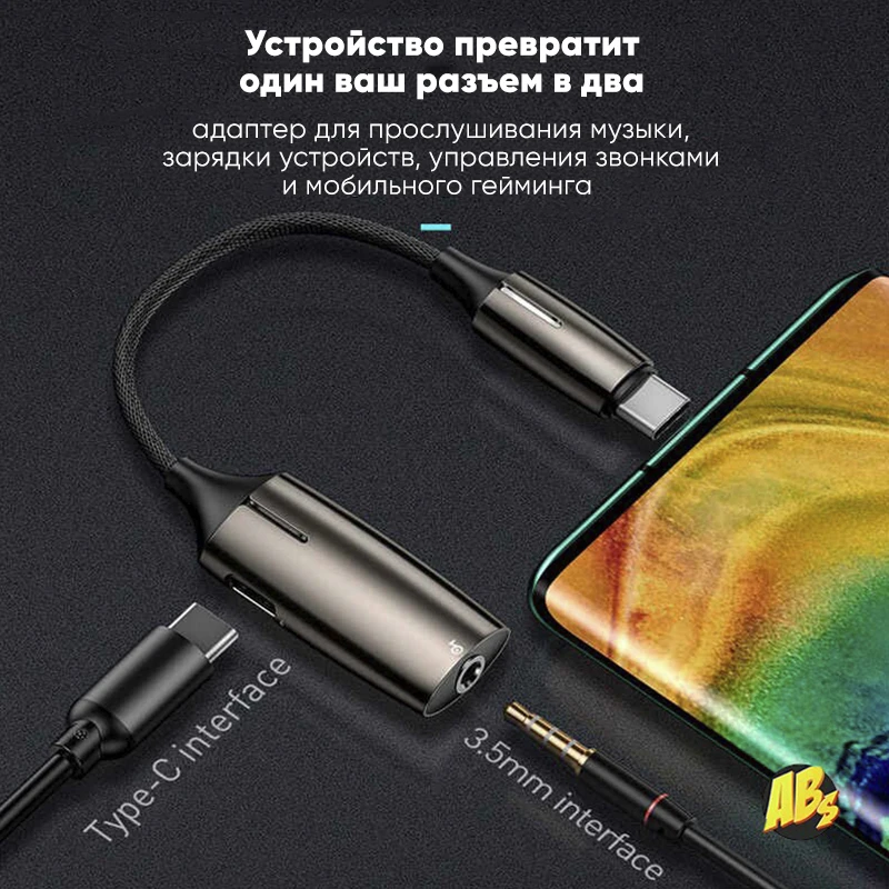 Адаптер создан для смартфонов с разъемом USB Type-C. С его помощью вы подключите к гаджету сразу два аксессуара: кабель для зарядки и наушники с коннектором 3.5 мм. Оба порта работают одновременно: сможете одномоментно слушать музыку и заряжать гаджет. Адаптер не искажает звук ни при прослушивании музыки, ни при звонках в режиме гарнитуры. Кабель-переходник сделан из прочных и надежных материалов: корпус и коннекторы из износостойкого цинкового сплава, а оплетка провода из крепкого нейлона.