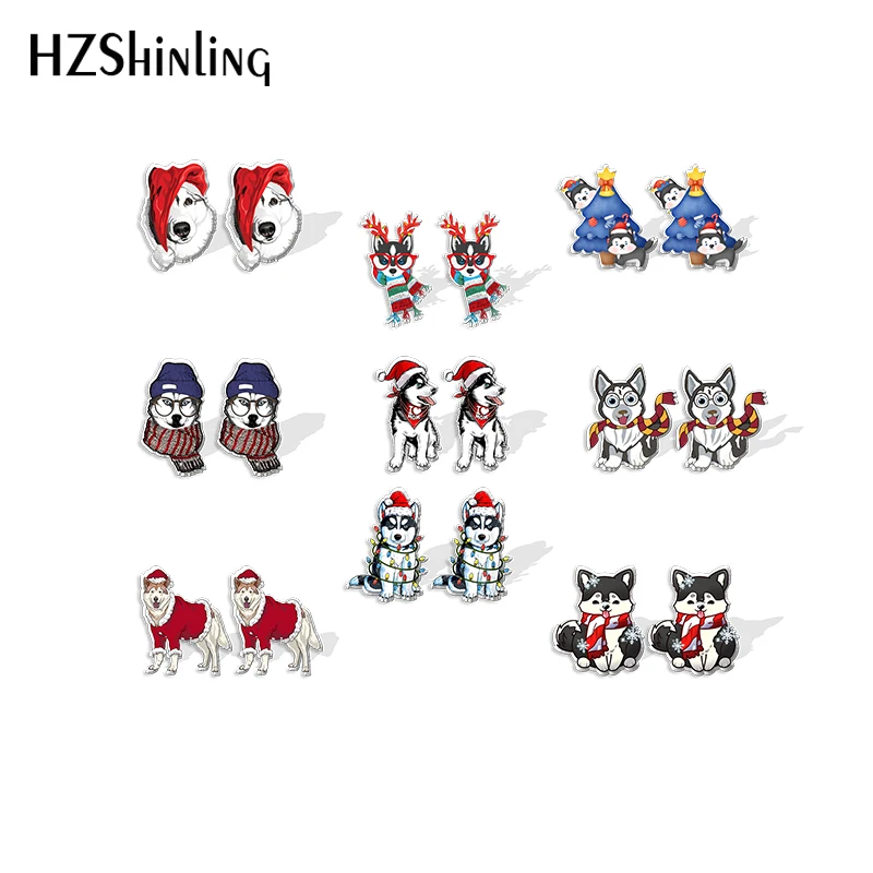 2021 новые рождественские серьги-гвоздики хаски серьги из акриловой смолы в виде - купить