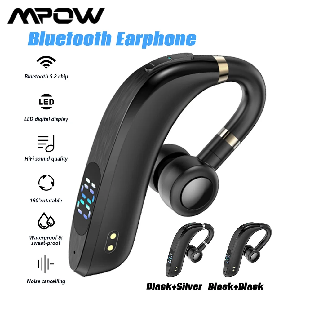 Bluetooth V5.2 Беспроводные наушники с одной стороны гарнитура с HiFi стереозвуком с шумоподавлением Водонепроницаемый ушной крючок подходит для двойных ушей