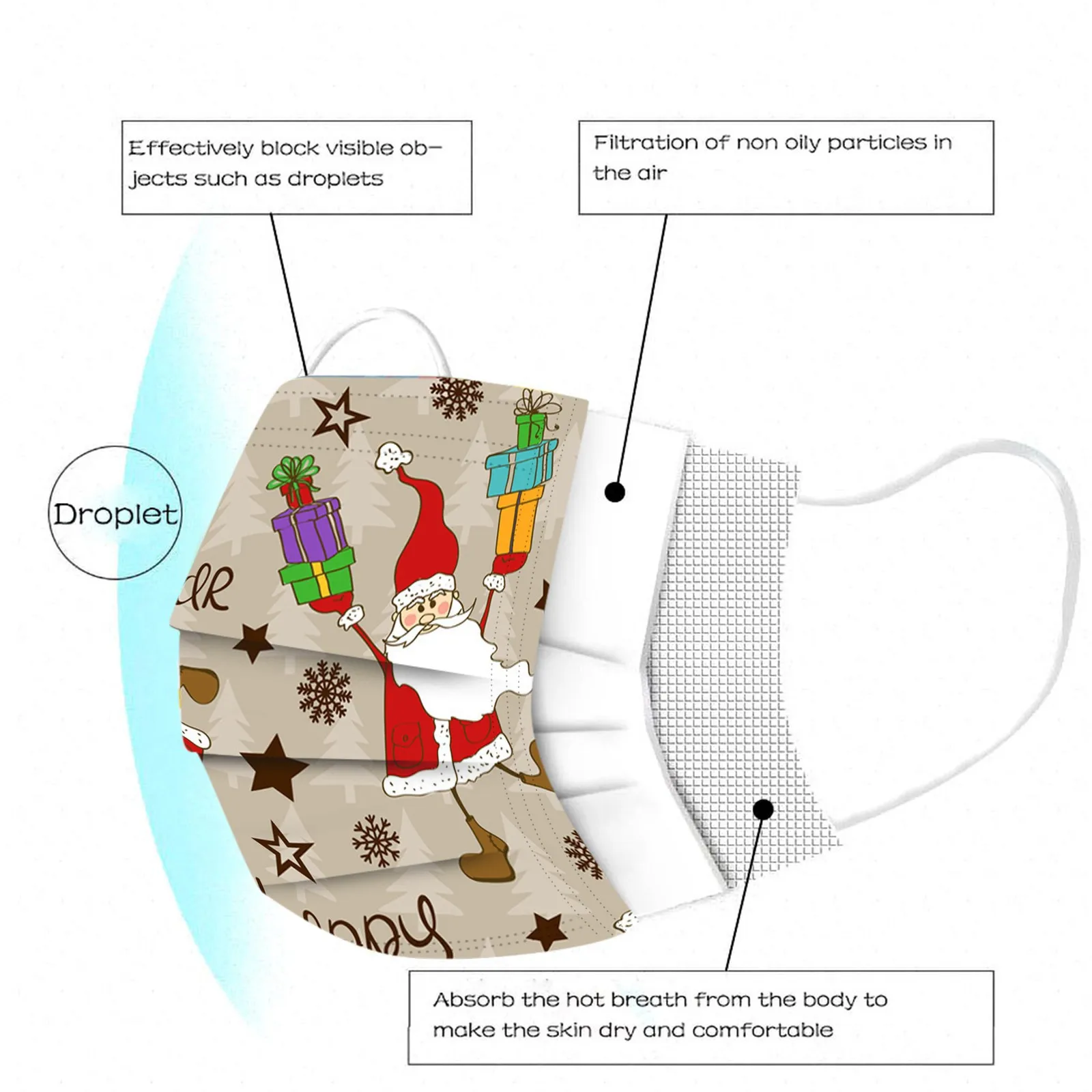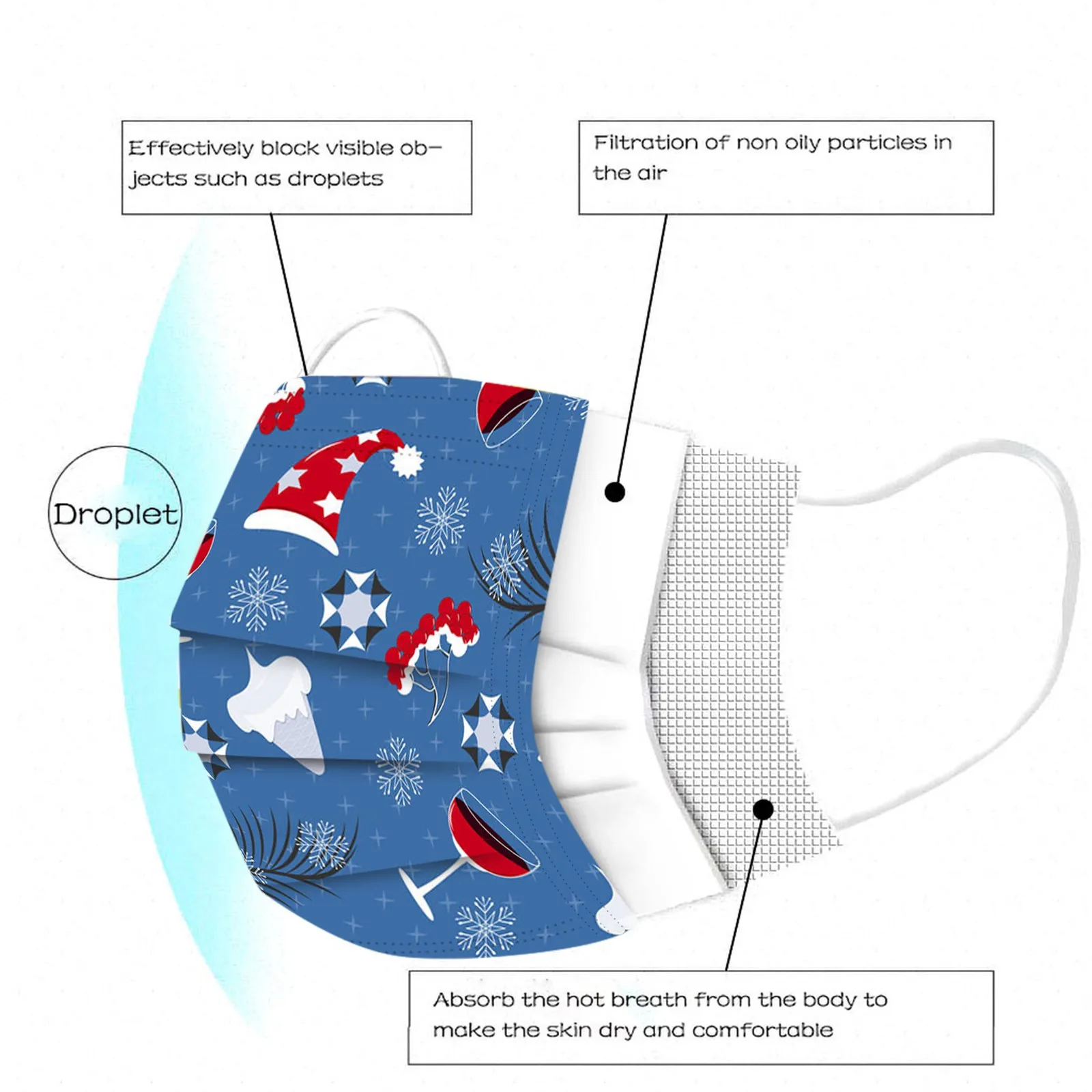 Купить Маски для взрослых и детей граффити Мультяшные одноразовые Spunlace Рождественская