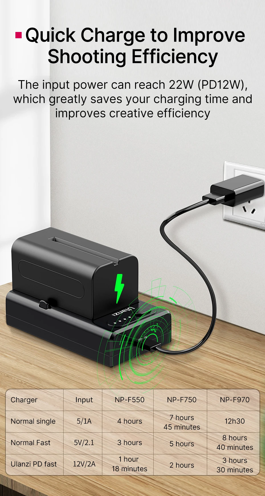 ULANZI NP-F550/F750/F950 NPF зарядное устройство PD Быстрая зарядка видео светильник YN300Air II DSLR - купить