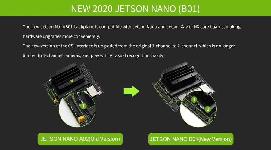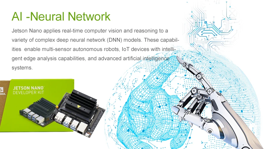 The JETSON NANO 4GB B01with a quad-core CORTEX-A57 processor, a 128-core MAXWELL GPU and 4GB of LPDDR memory with power Al computing power to provide 472GFLOP and support a range of popular AI frameworks and algorithms such as TENSORFLOW, PYTORCH, CAFFE /CAFFE2, KERAS, MXNET, etc.