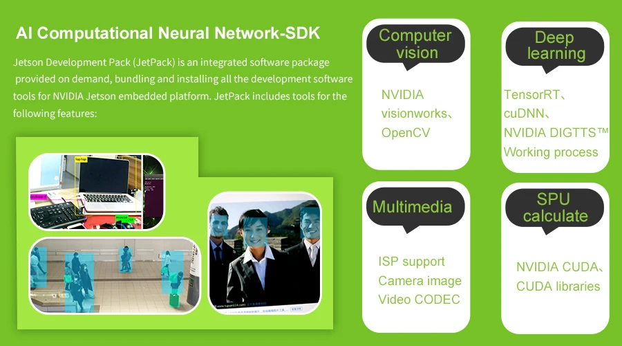 The same JetPack SDK is used across the entire NVIDIA Jetson family of products and can be used in multimedia, SPU media, computer vision, deep learning and other fields.