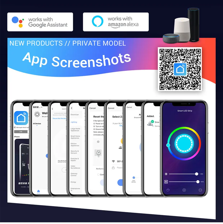 ИК-пульт дистанционного управления/Голосовое управление/Синхронизация в музыкальном режиме/настройка времени/Диммирование/Сделай сам/Совместимость с Amazon Alexa Echo Google Home Assistant.