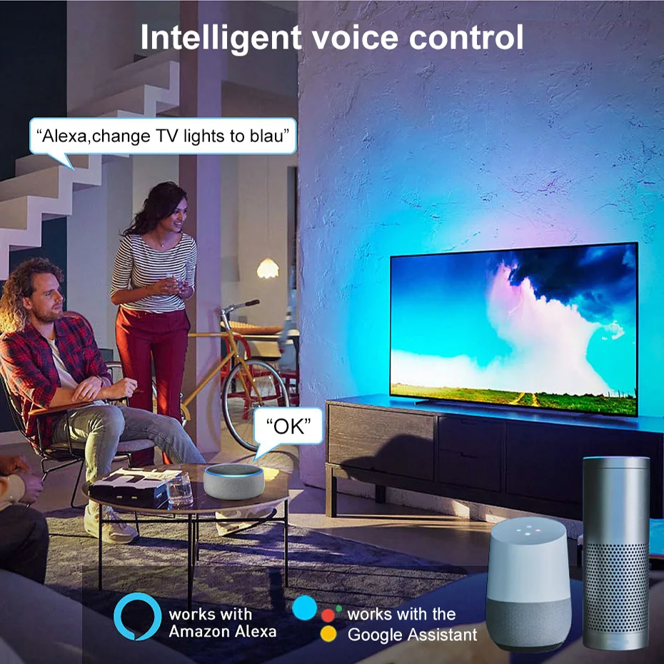 1. Голосовое управление, дистанционное управление с помощью приложения, с регулируемой яркостью, Совместимость с Amazon Alexa Echo Google Home Assistant