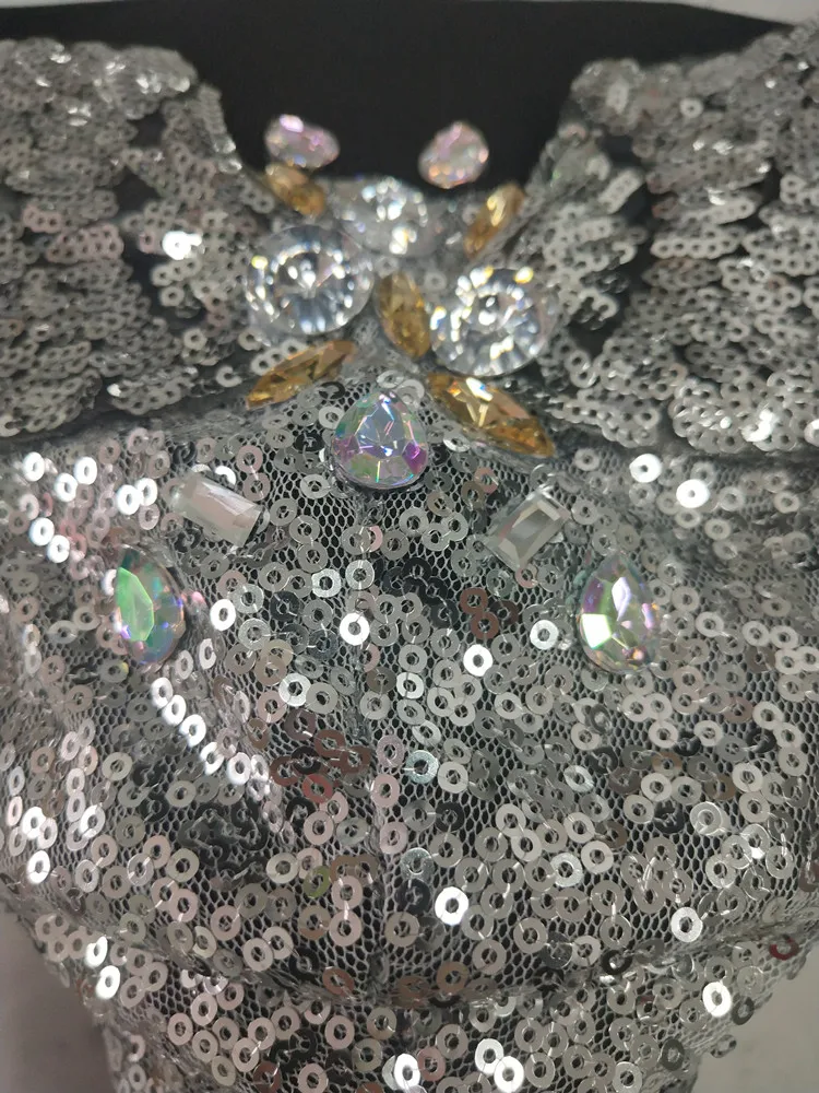 Отзывы о Сексуальная сценическая одежда для бара серебряные блестки эполеты в виде