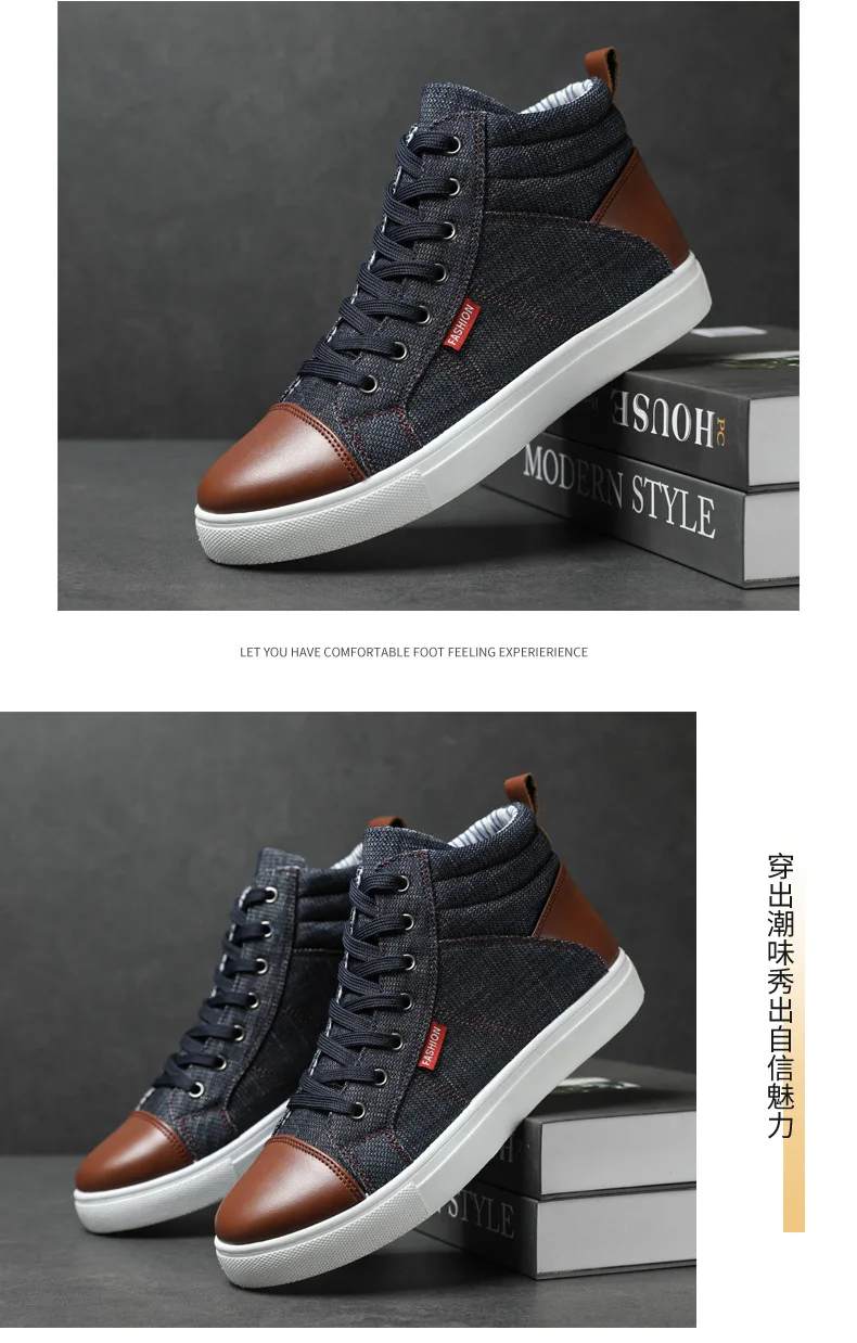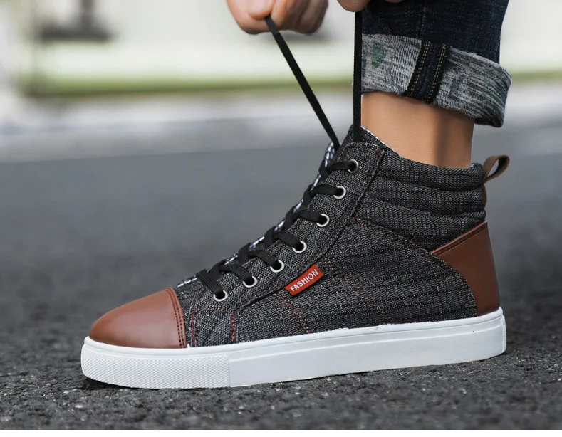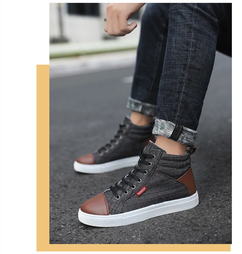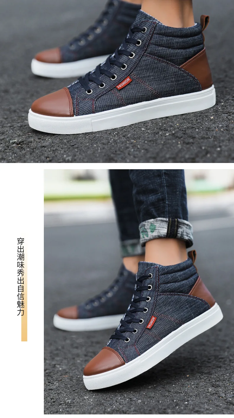 Купить Кроссовки мужские из денима Вулканизированная подошва высокие спортивные