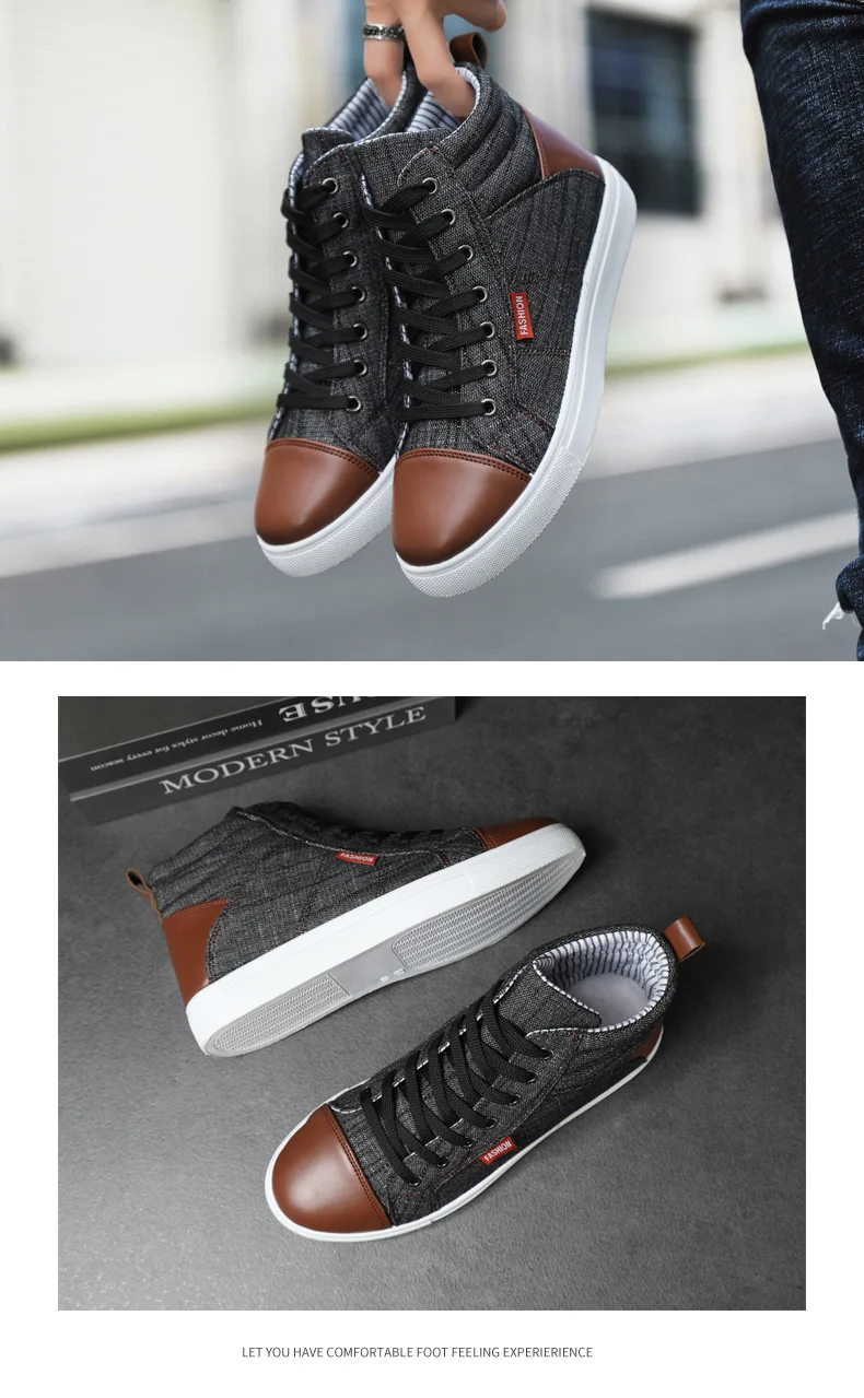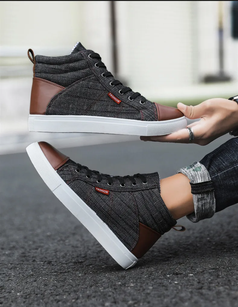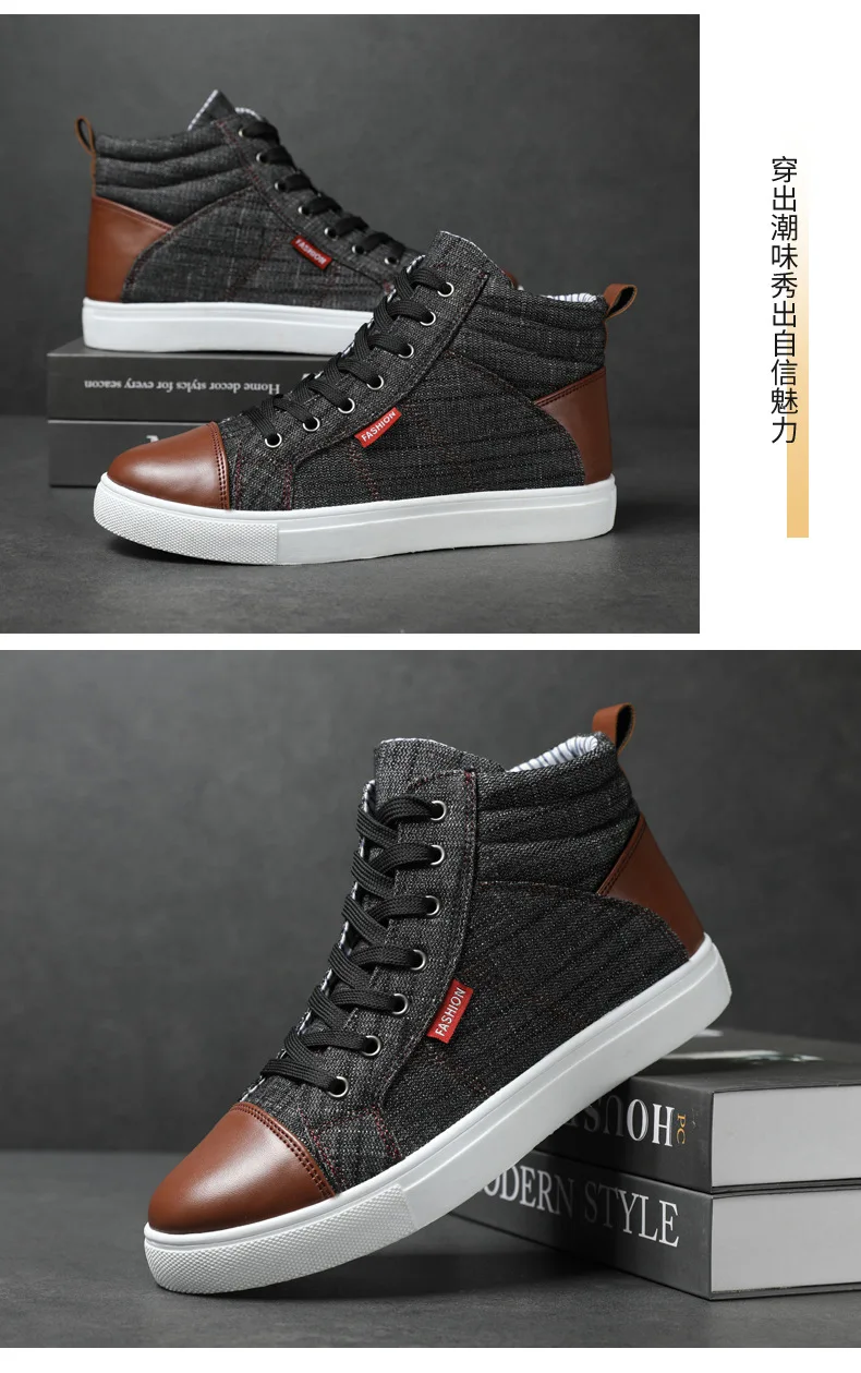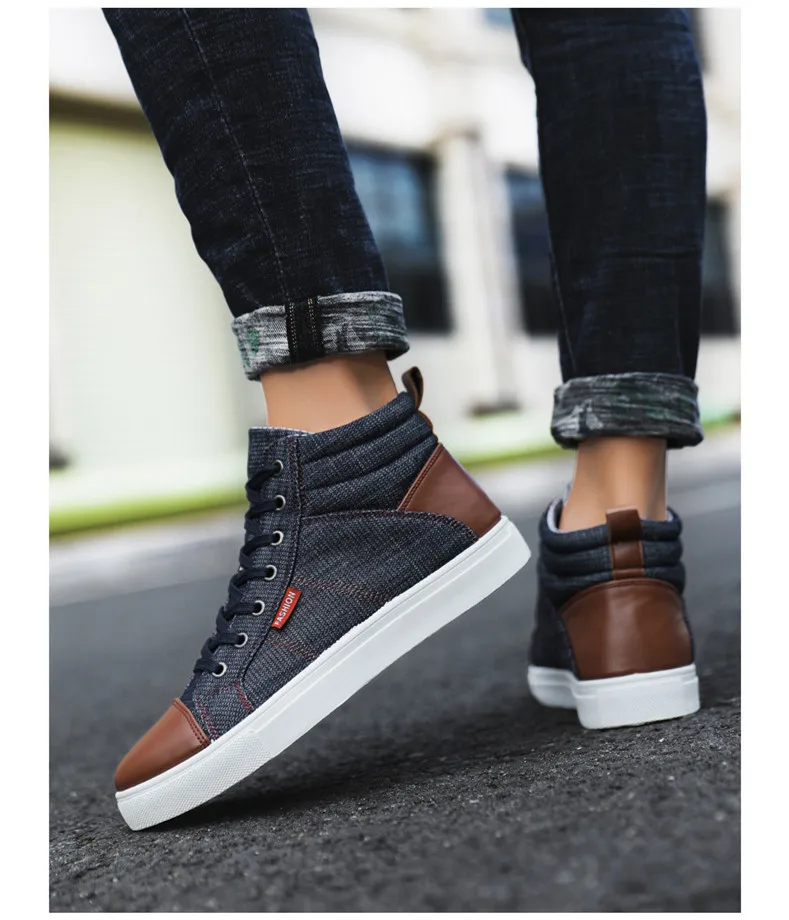 Купить Кроссовки мужские из денима Вулканизированная подошва высокие спортивные