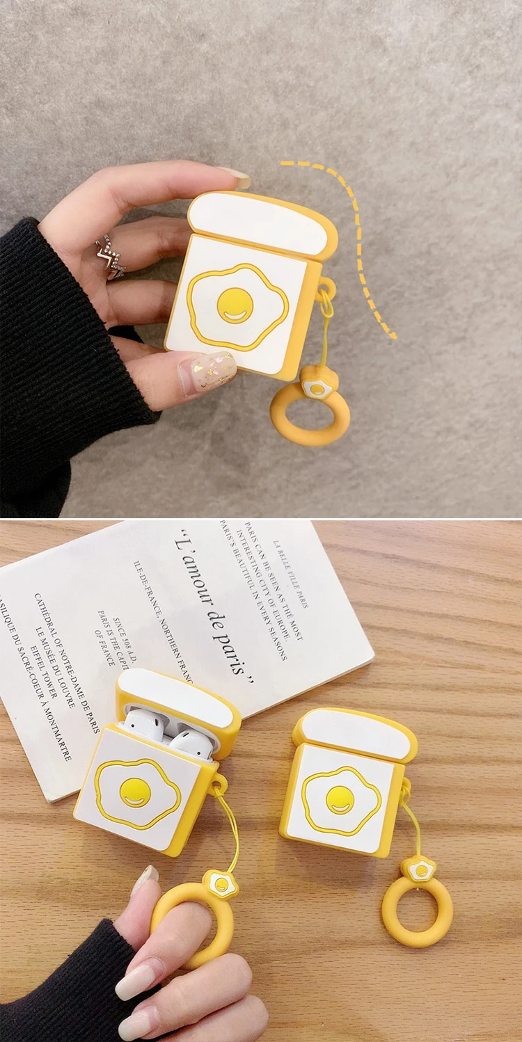 Ins Япония Южная Корея тост яйца для Airpods 1 2 наушники чехол Apple беспроводные Bluetooth наушники силиконовый рукав AirPods 1 2