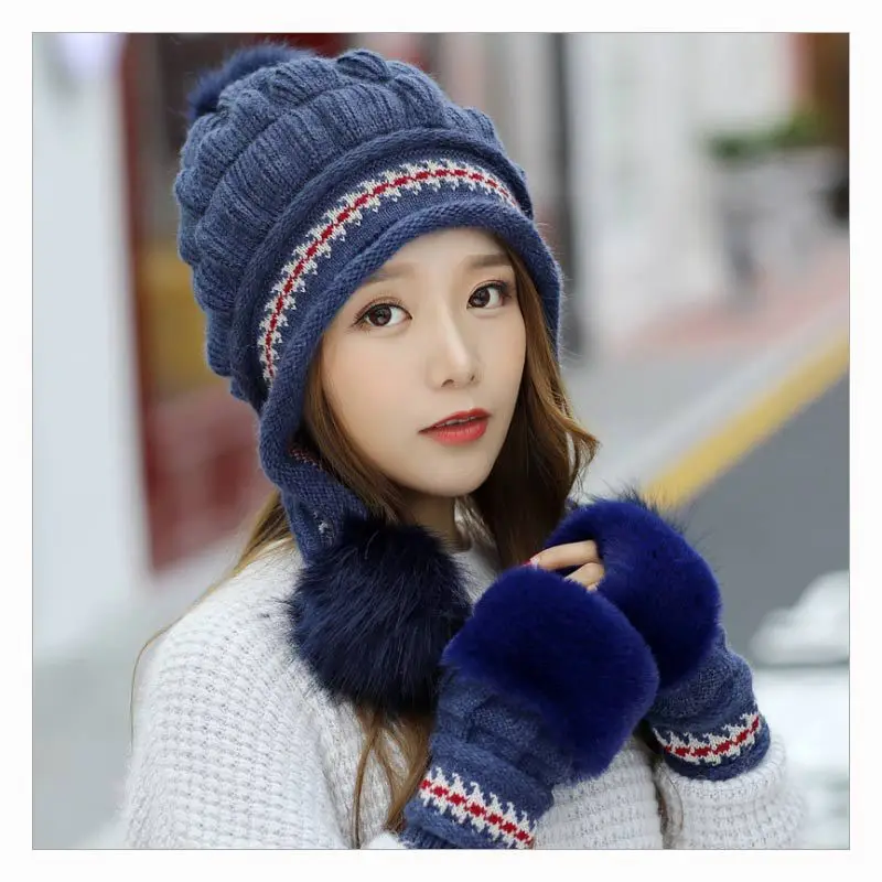 Купить Новинка 2021 Женская осенне-зимняя шапка с капюшоном корейская модная Вязаная